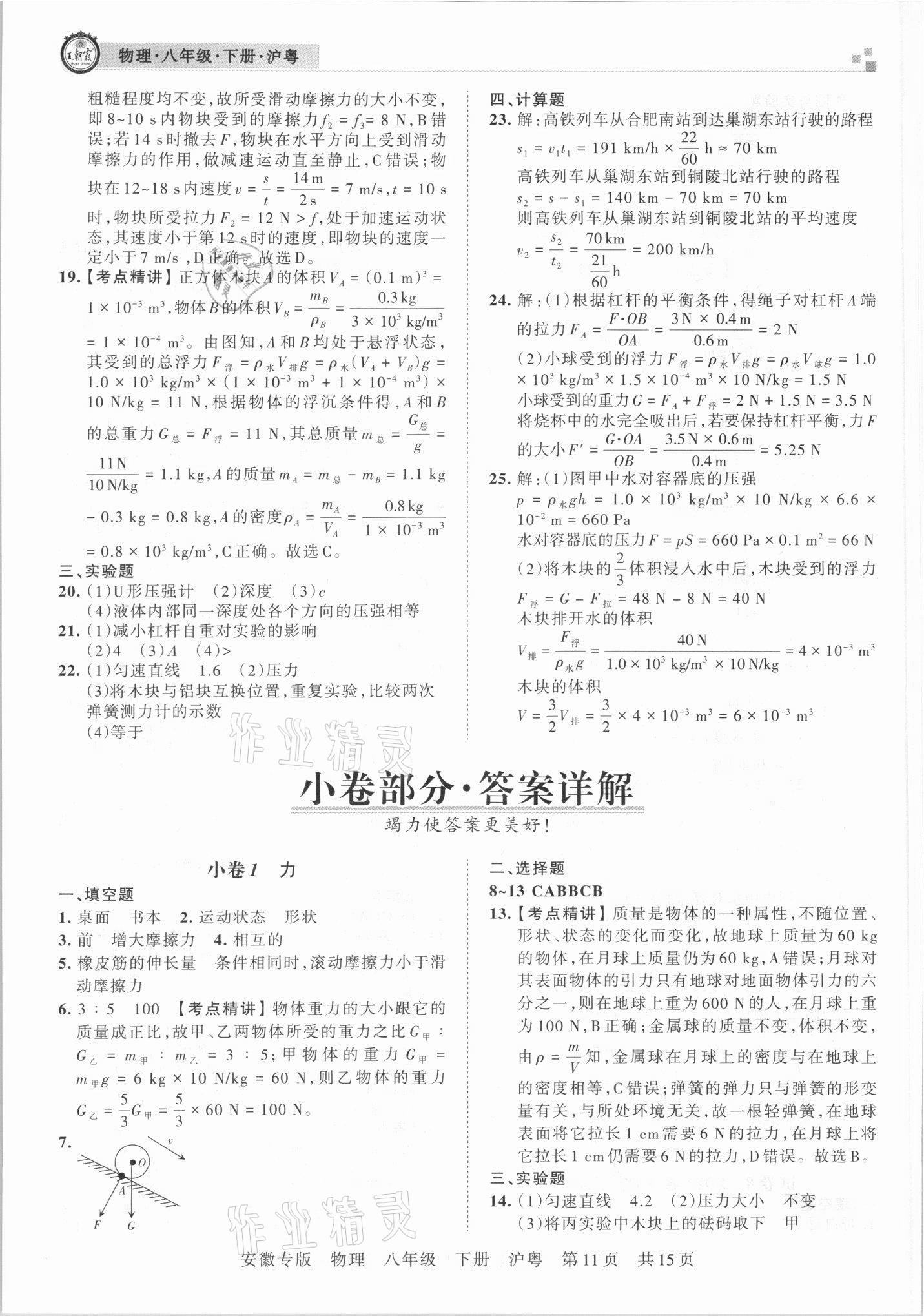 2021年王朝霞各地期末试卷精选八年级物理下册沪粤版安徽专版