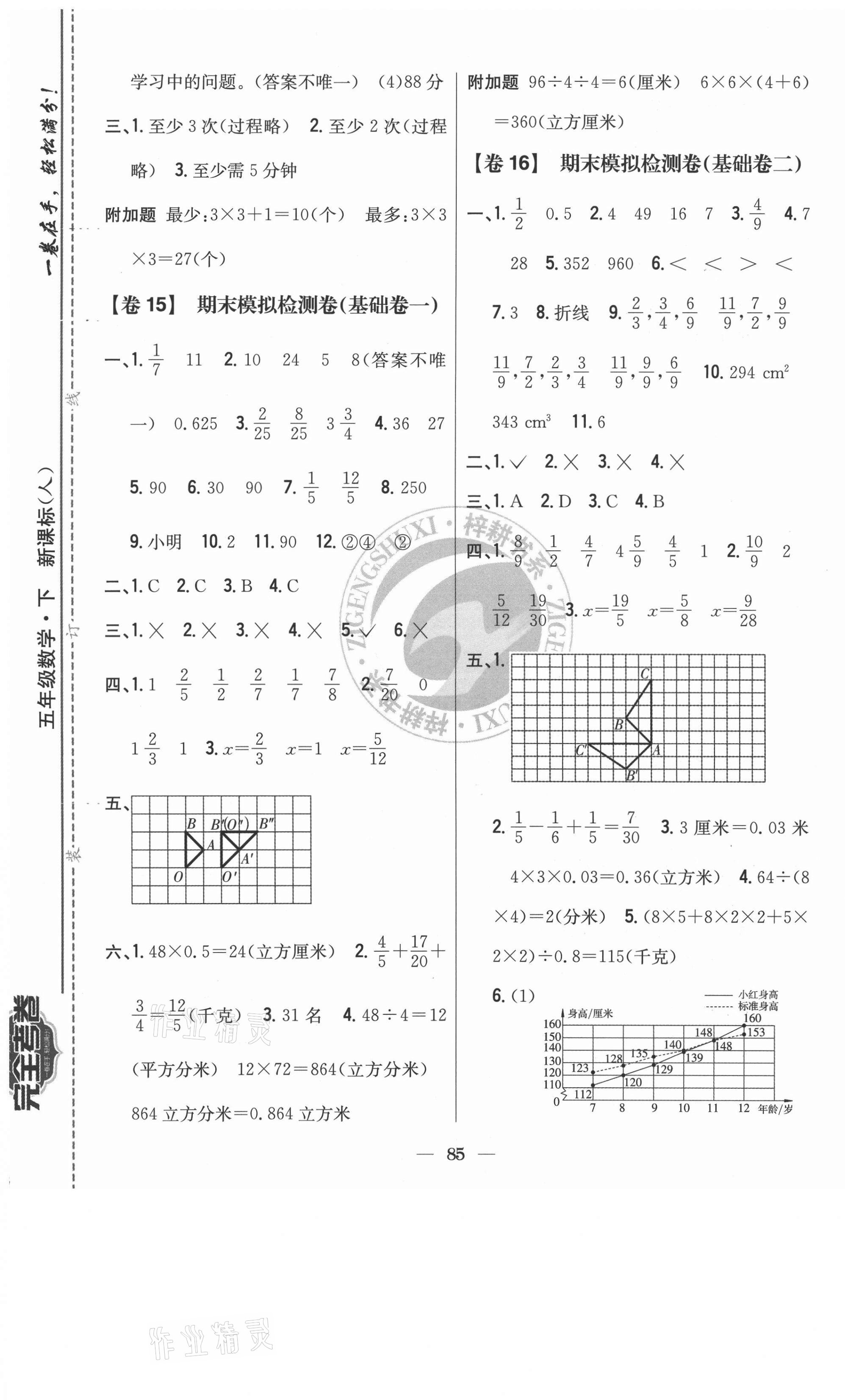 注:目前有些书本章节名称可能整理的还不是很完善,但都是按照顺序排列的,请同学们按照顺序仔细查找。练习册 2021年小学教材完全考卷五年级数学下册人教版 答案主要是用来给同学们做完题方便对答案用的,请勿直接抄袭。