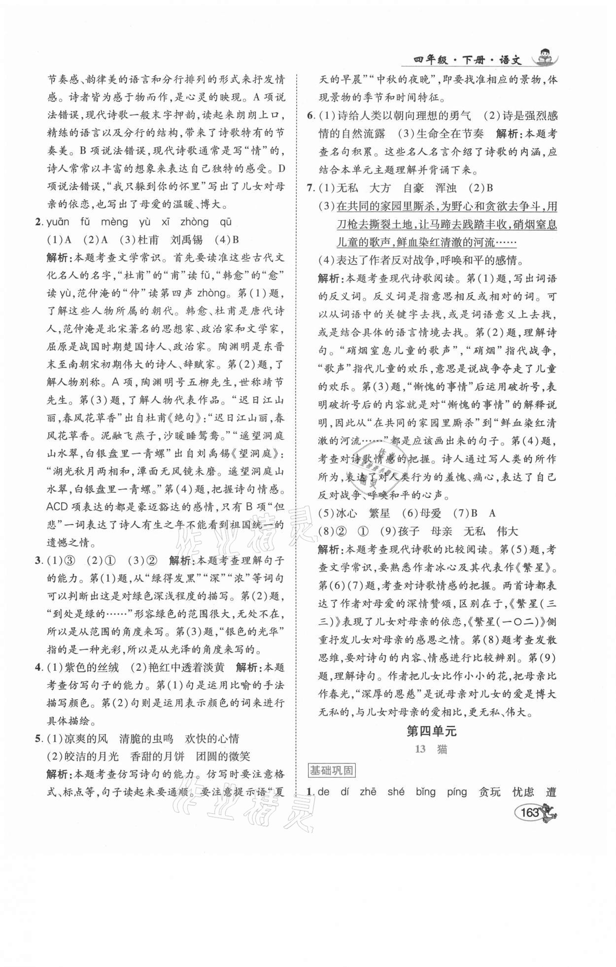 注:目前有些书本章节名称可能整理的还不是很完善,但都是按照顺序排列的,请同学们按照顺序仔细查找。练习册 2021年尚学生香英才天天练四年级语文下册人教版福建专版 答案主要是用来给同学们做完题方便对答案用的,请勿直接抄袭。