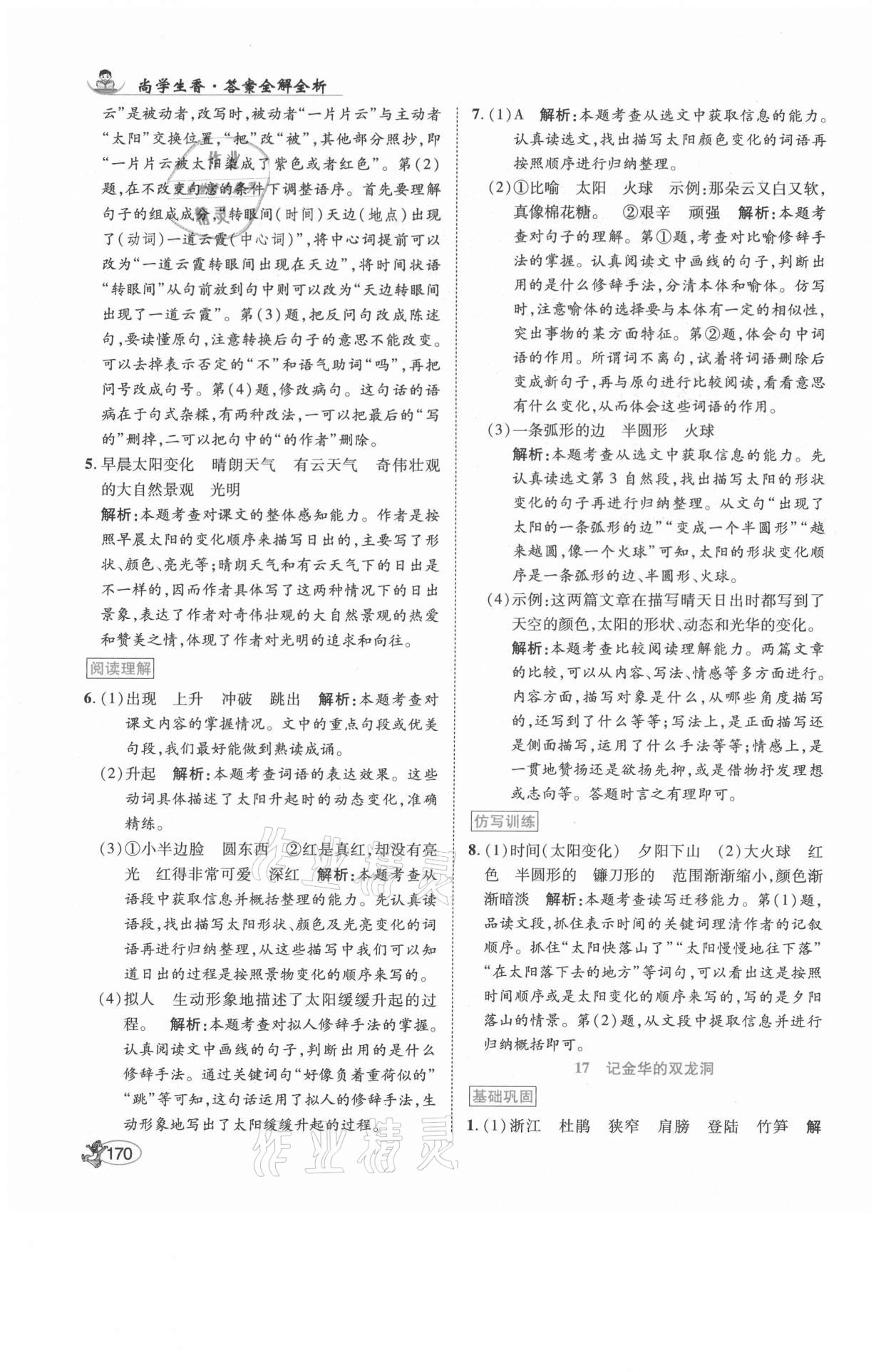 注:目前有些书本章节名称可能整理的还不是很完善,但都是按照顺序排列的,请同学们按照顺序仔细查找。练习册 2021年尚学生香英才天天练四年级语文下册人教版福建专版 答案主要是用来给同学们做完题方便对答案用的,请勿直接抄袭。