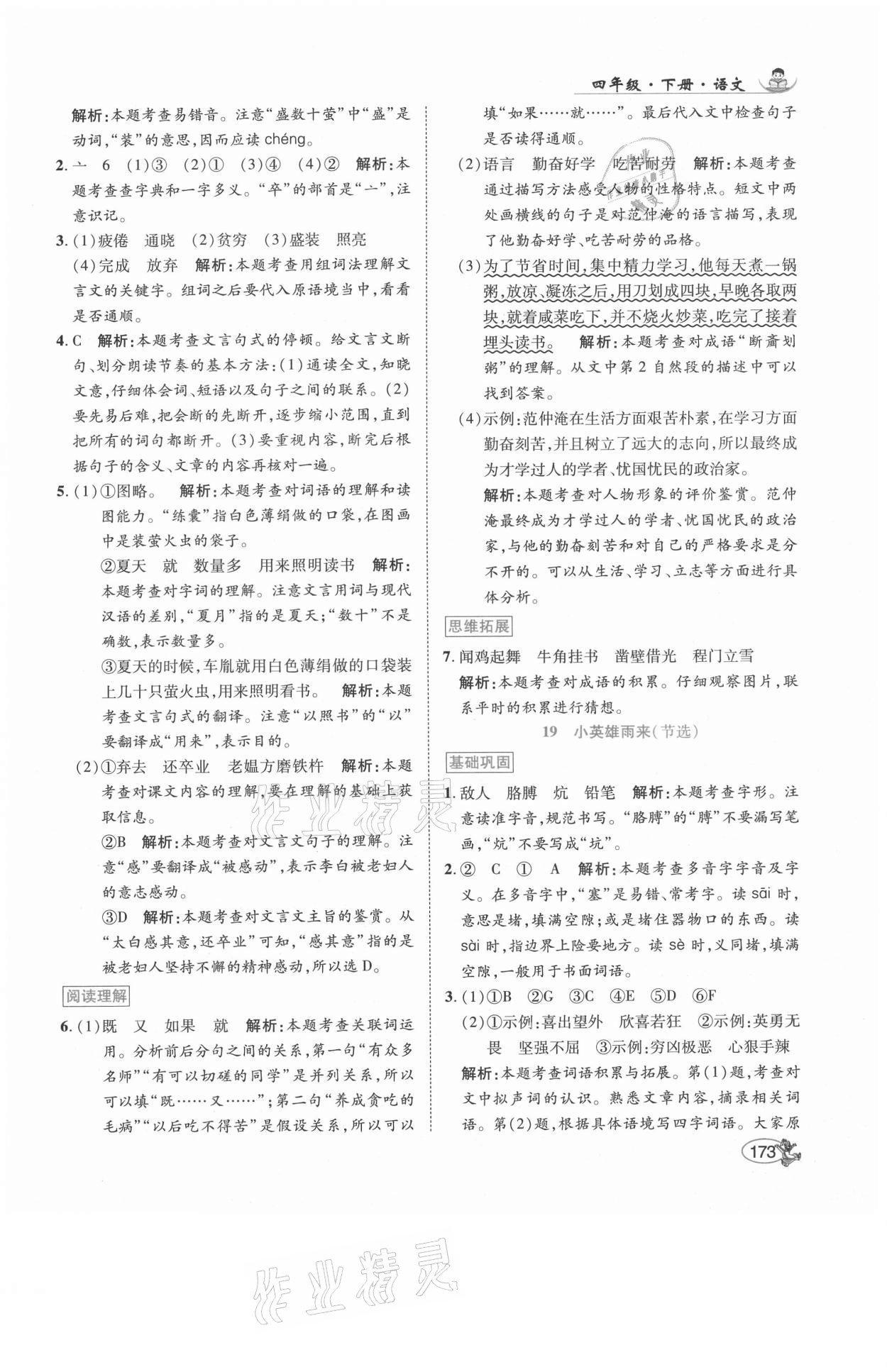 2021年尚学生香英才天天练四年级语文下册人教版福建专版