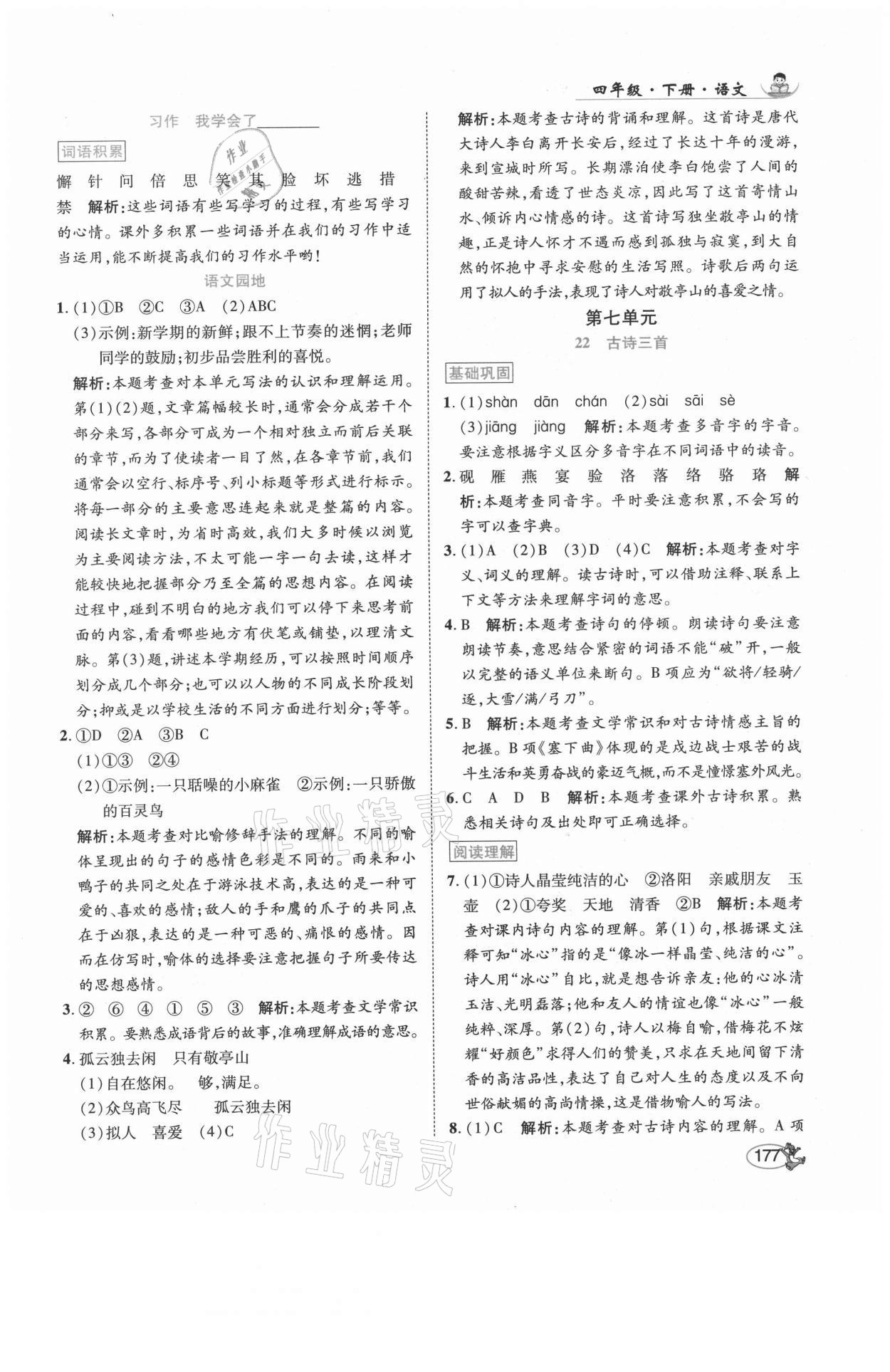 注:目前有些书本章节名称可能整理的还不是很完善,但都是按照顺序排列的,请同学们按照顺序仔细查找。练习册 2021年尚学生香英才天天练四年级语文下册人教版福建专版 答案主要是用来给同学们做完题方便对答案用的,请勿直接抄袭。