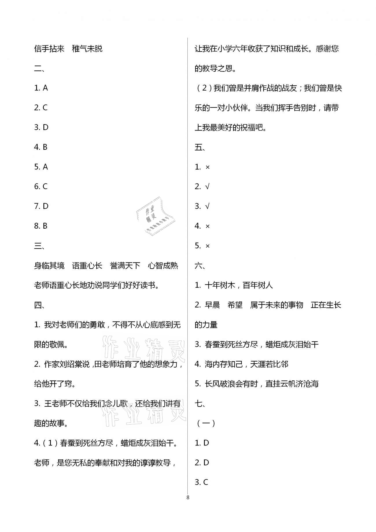 注:目前有些书本章节名称可能整理的还不是很完善,但都是按照顺序排列的,请同学们按照顺序仔细查找。练习册 2021年随堂测试卷小学测试卷六年级语文数学英语下册 答案主要是用来给同学们做完题方便对答案用的,请勿直接抄袭。