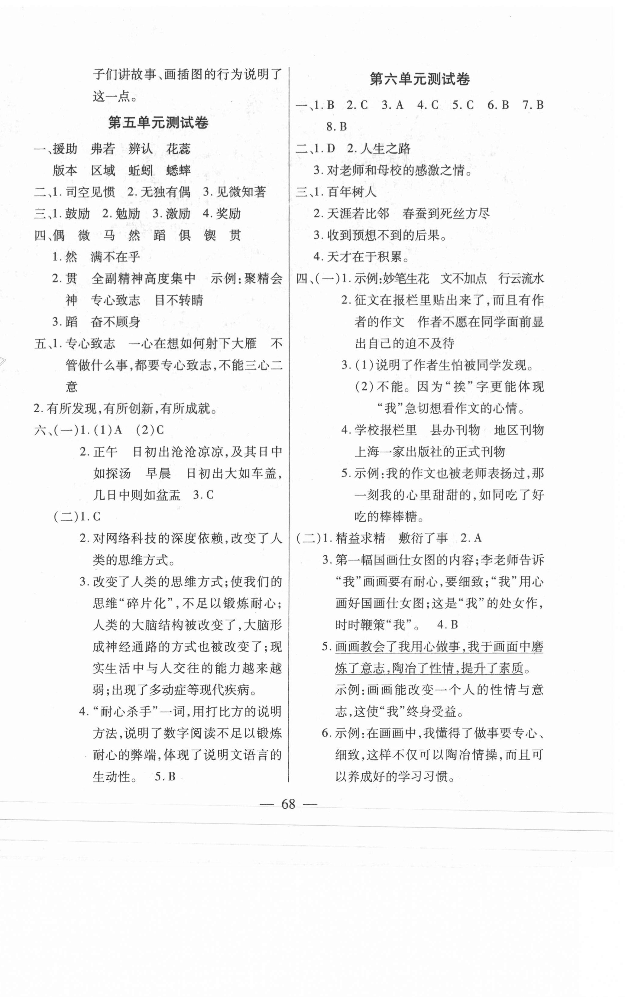 注:目前有些书本章节名称可能整理的还不是很完善,但都是按照顺序排列的,请同学们按照顺序仔细查找。练习册 2021年智优教辅全能金卷六年级语文下册人教版 答案主要是用来给同学们做完题方便对答案用的,请勿直接抄袭。