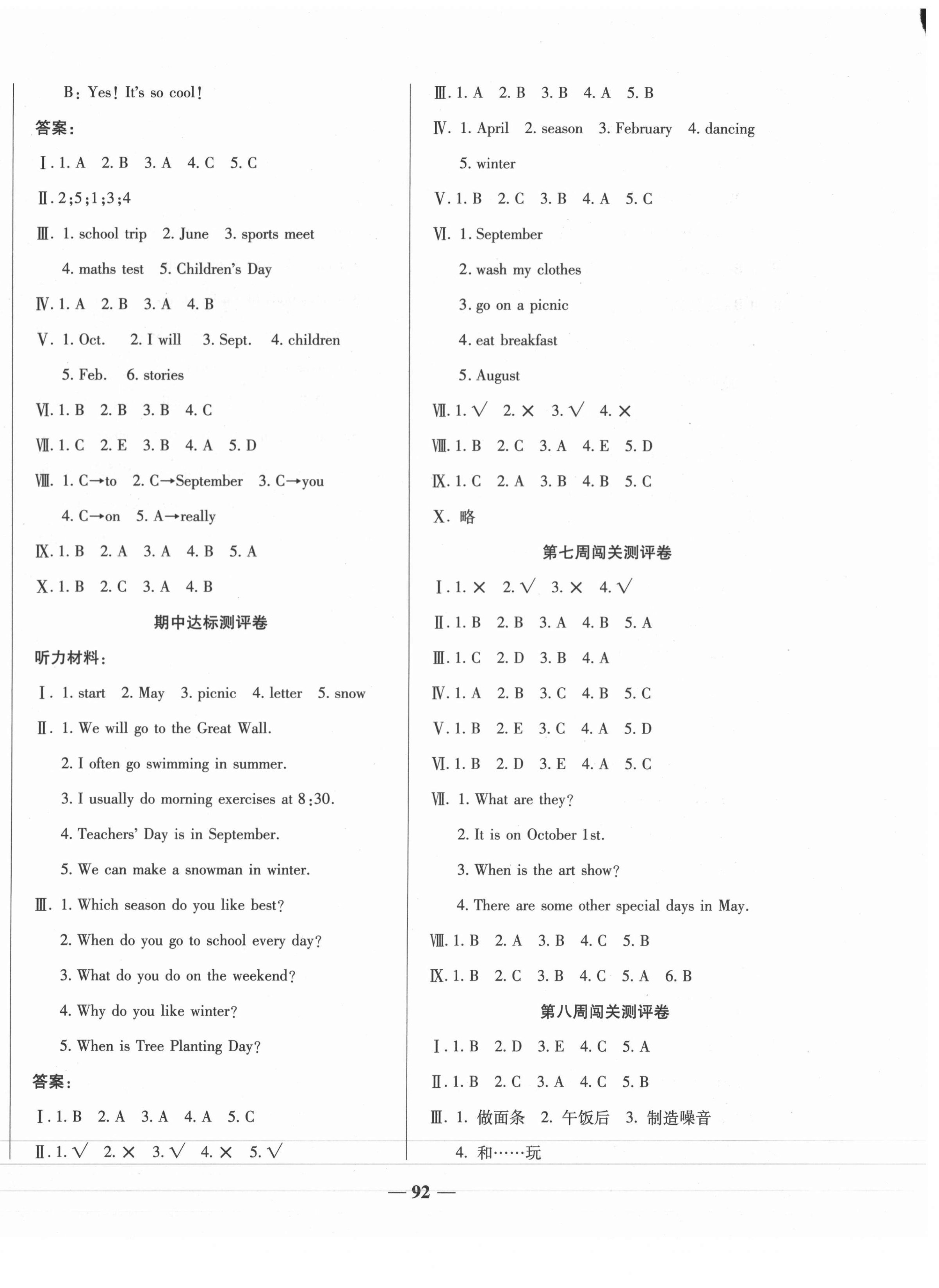 2021年状元大考卷五年级英语下册人教PEP版天津科学技术出版社