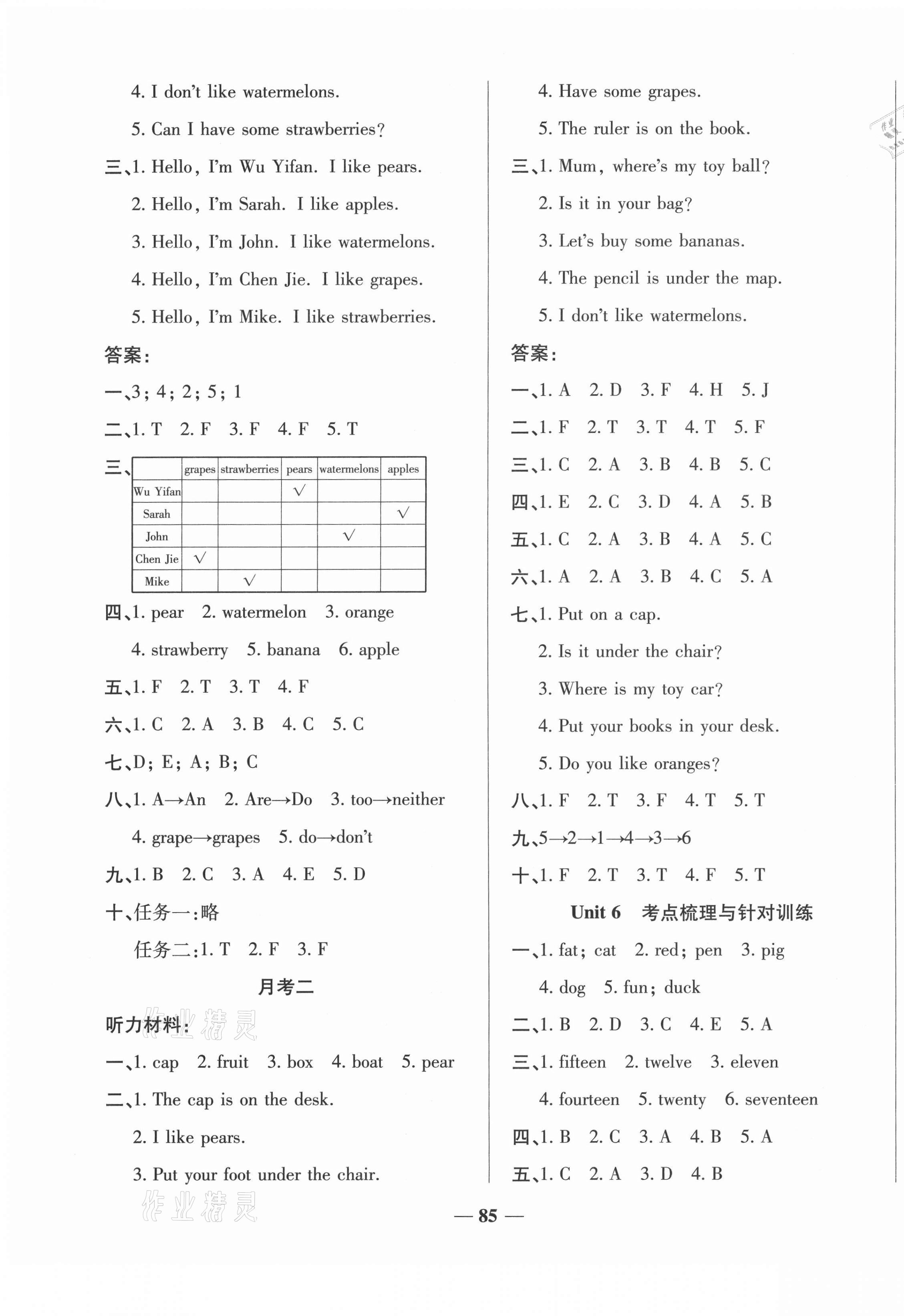 注:目前有些书本章节名称可能整理的还不是很完善,但都是按照顺序排列的,请同学们按照顺序仔细查找。练习册 2021年夺冠金卷三年级英语下册人教PEP版 答案主要是用来给同学们做完题方便对答案用的,请勿直接抄袭。