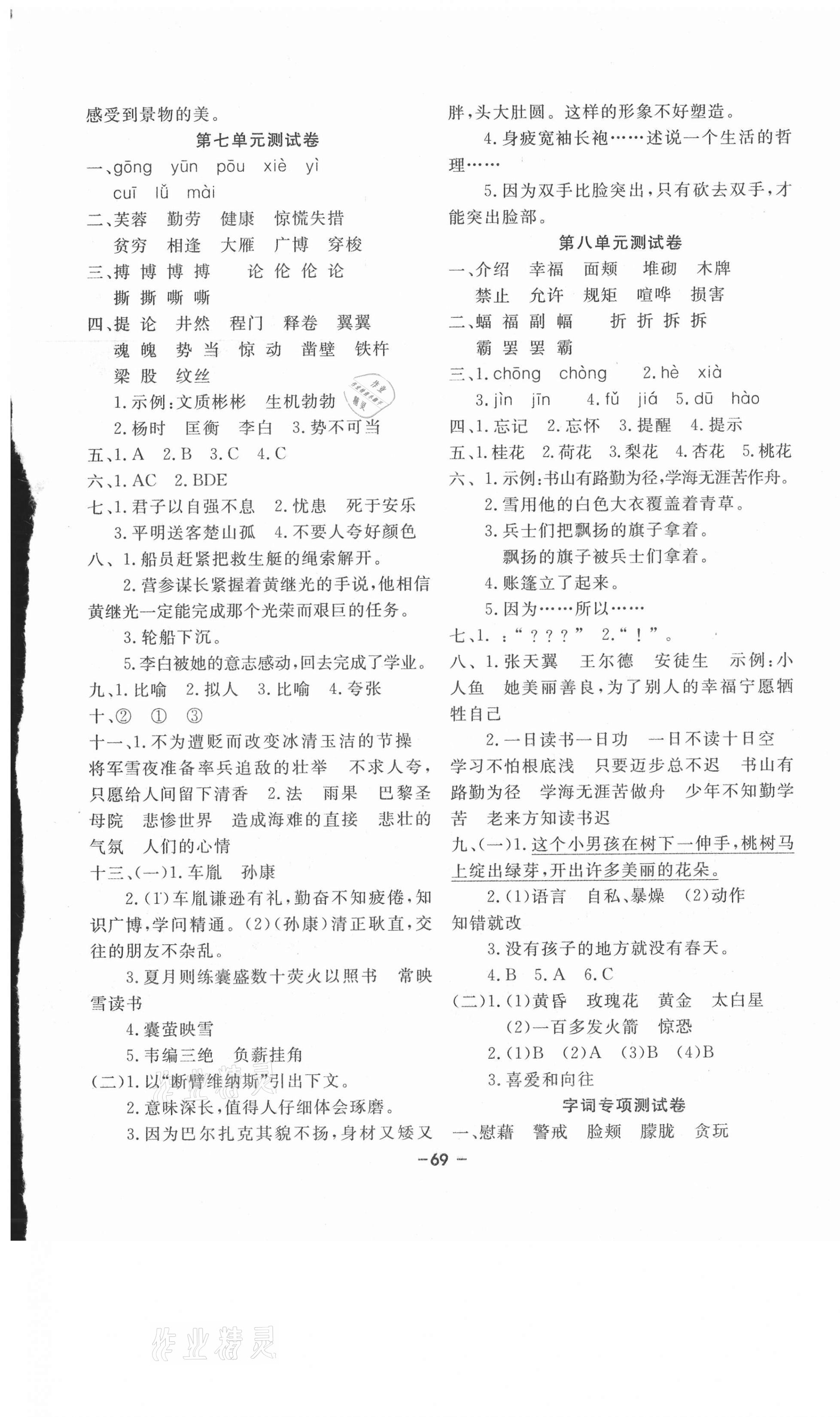 注:目前有些书本章节名称可能整理的还不是很完善,但都是按照顺序排列的,请同学们按照顺序仔细查找。练习册 2021年名题金卷四年级语文下册人教版 答案主要是用来给同学们做完题方便对答案用的,请勿直接抄袭。