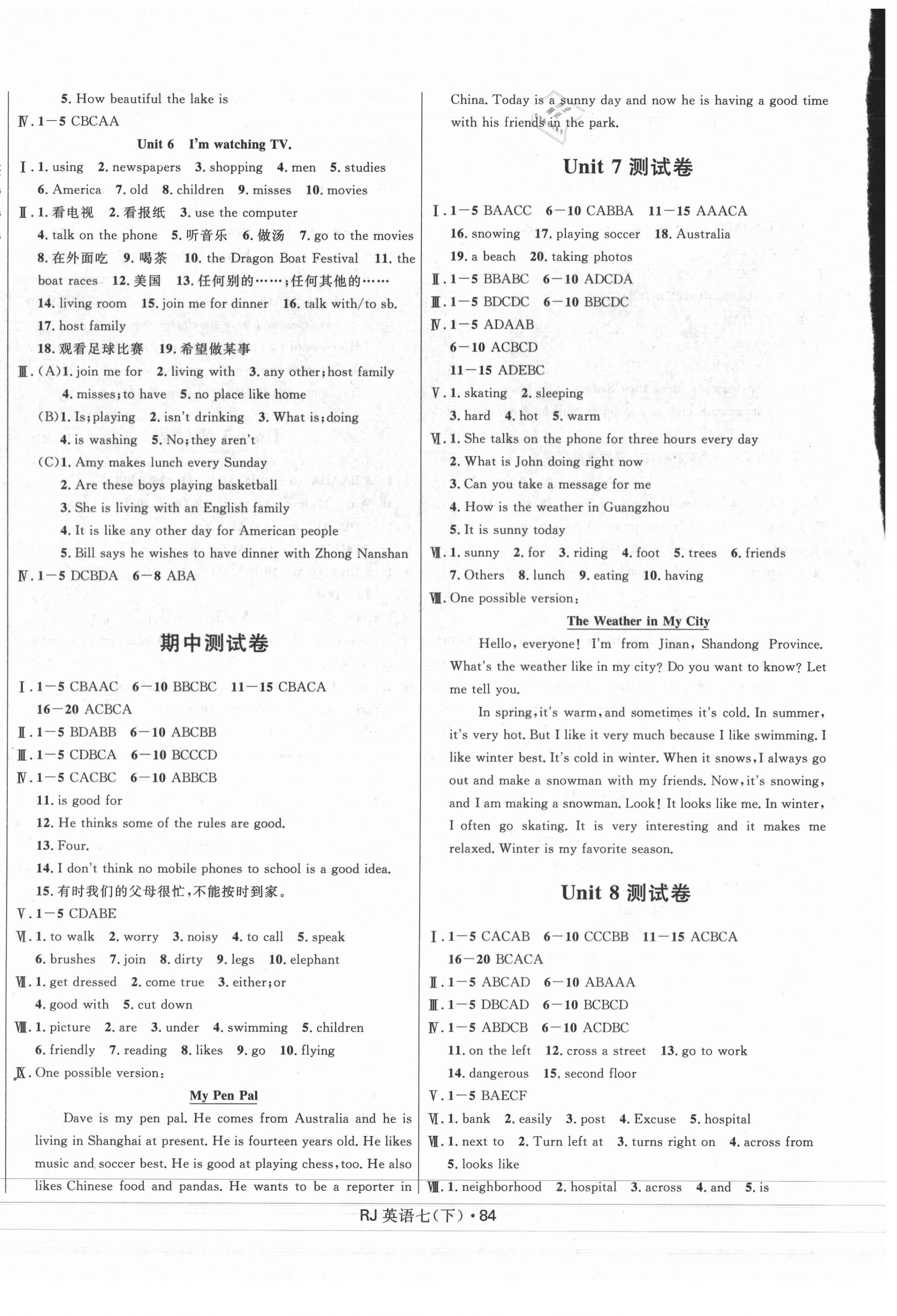 注:目前有些书本章节名称可能整理的还不是很完善,但都是按照顺序排列的,请同学们按照顺序仔细查找。练习册 2021年创新与探究测试卷七年级英语下册人教版 答案主要是用来给同学们做完题方便对答案用的,请勿直接抄袭。