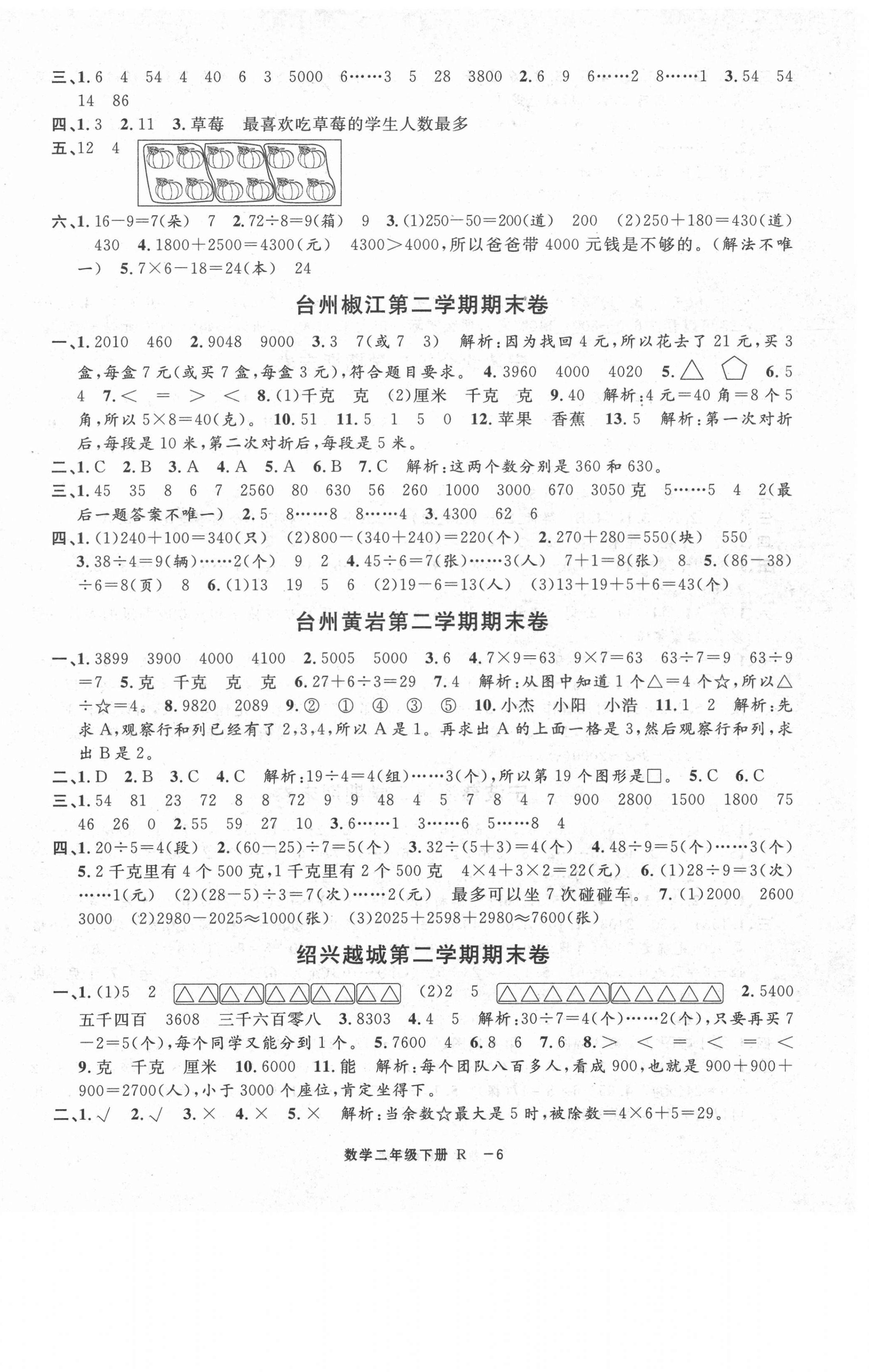 2021年浙江各地期末迎考卷二年级数学下册人教版