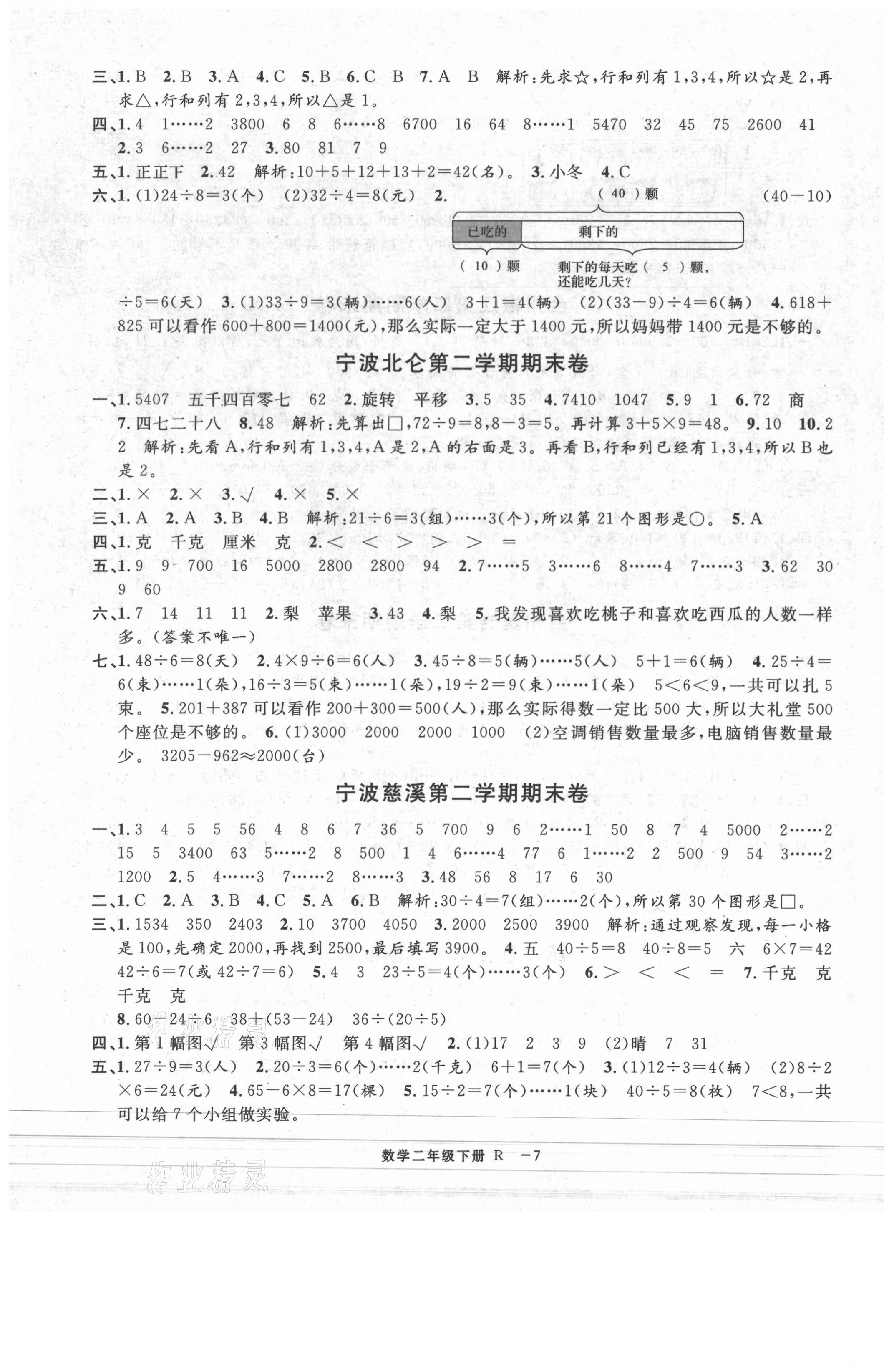 2021年浙江各地期末迎考卷二年级数学下册人教版