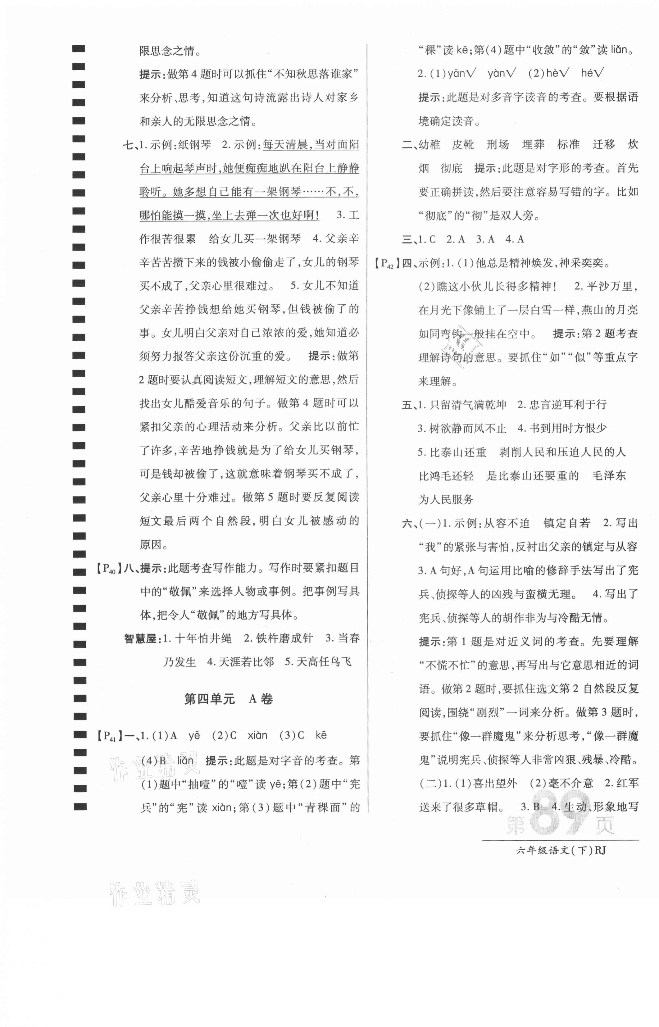 注:目前有些书本章节名称可能整理的还不是很完善,但都是按照顺序排列的,请同学们按照顺序仔细查找。练习册 2021年最新AB卷六年级语文下册人教版 答案主要是用来给同学们做完题方便对答案用的,请勿直接抄袭。