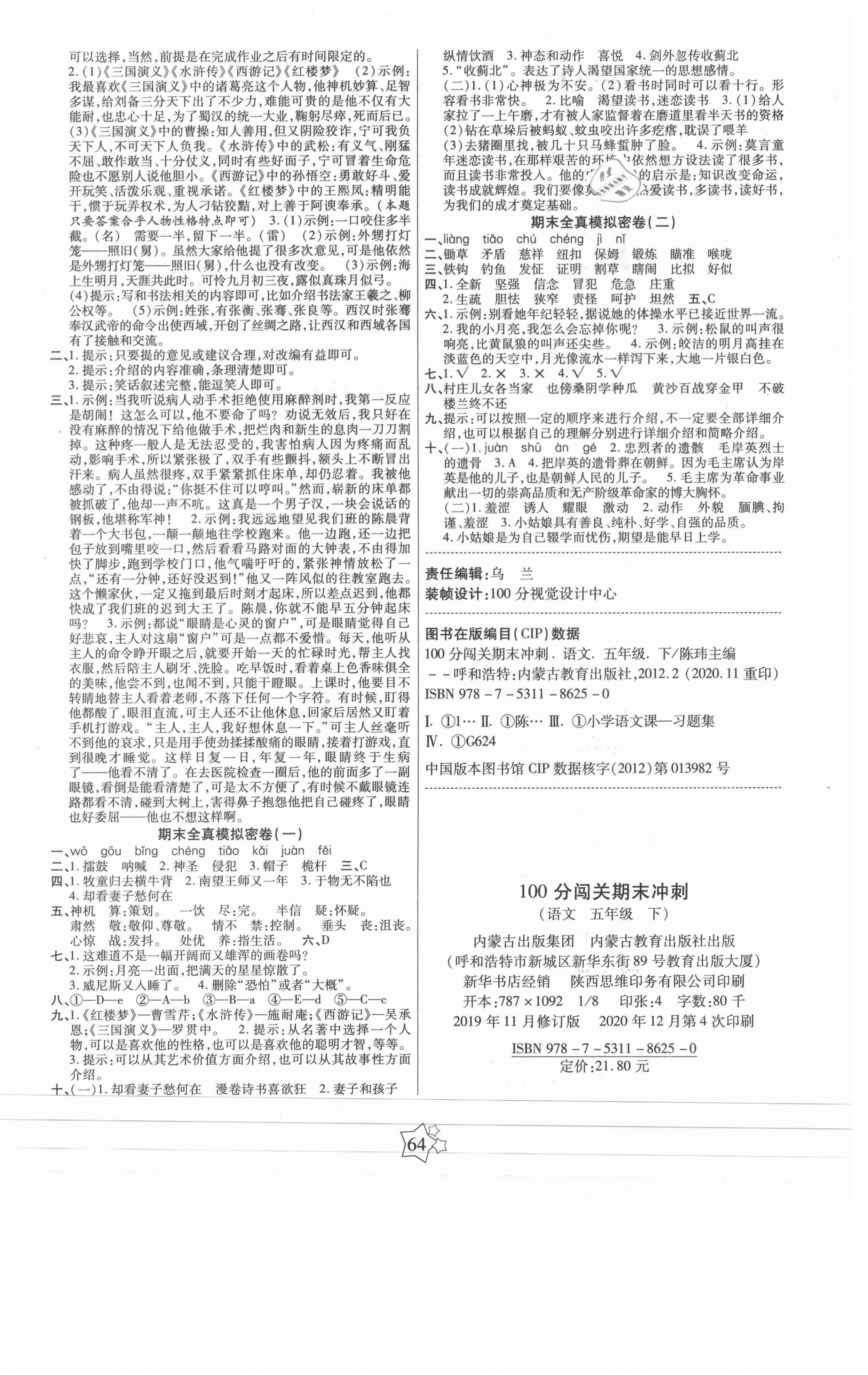 《2021年100分闯关期末冲刺五年级语文下册人教版》