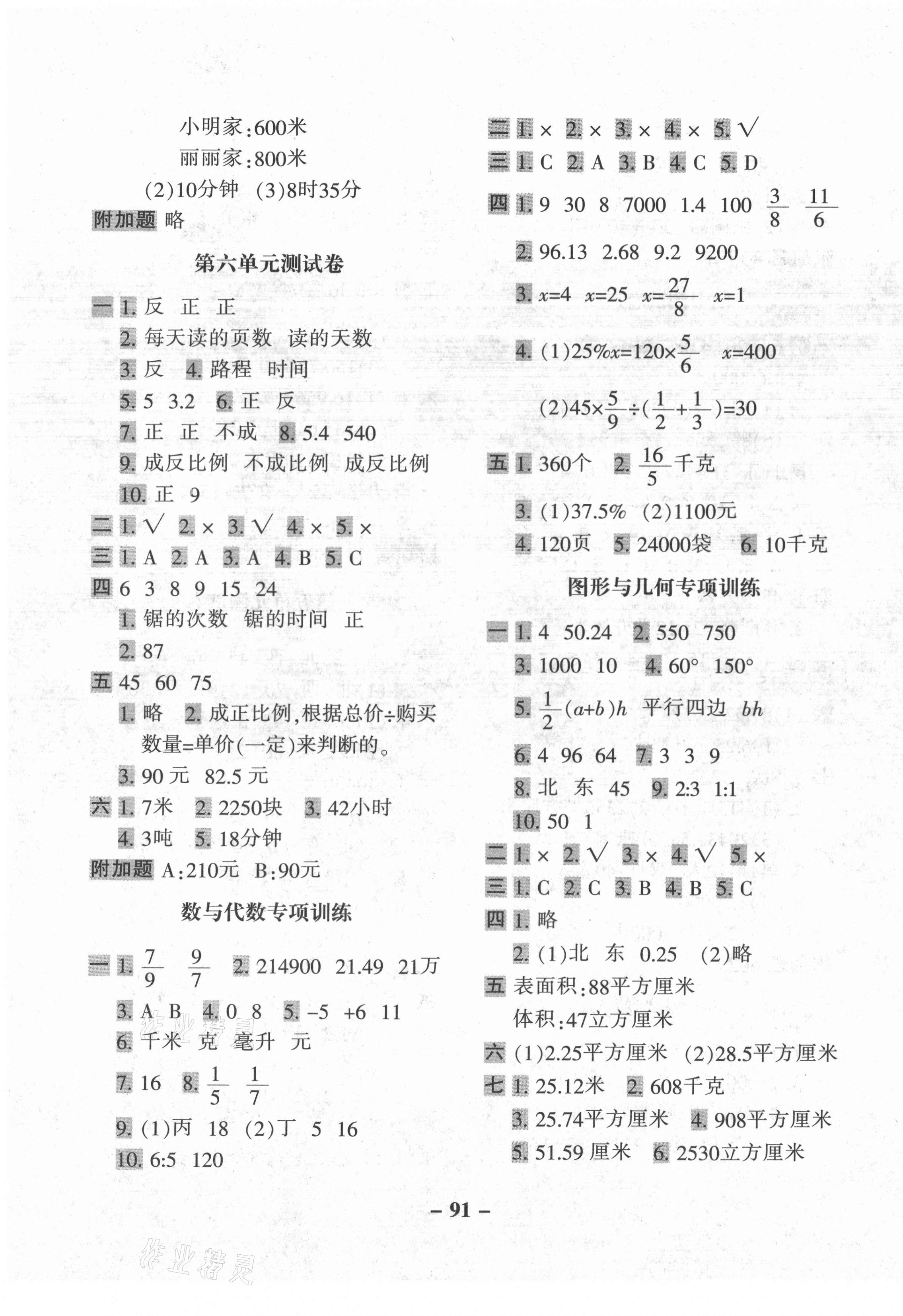 注:目前有些书本章节名称可能整理的还不是很完善,但都是按照顺序排列的,请同学们按照顺序仔细查找。练习册 2021年期末闯关100分六年级数学下册江苏版 答案主要是用来给同学们做完题方便对答案用的,请勿直接抄袭。
