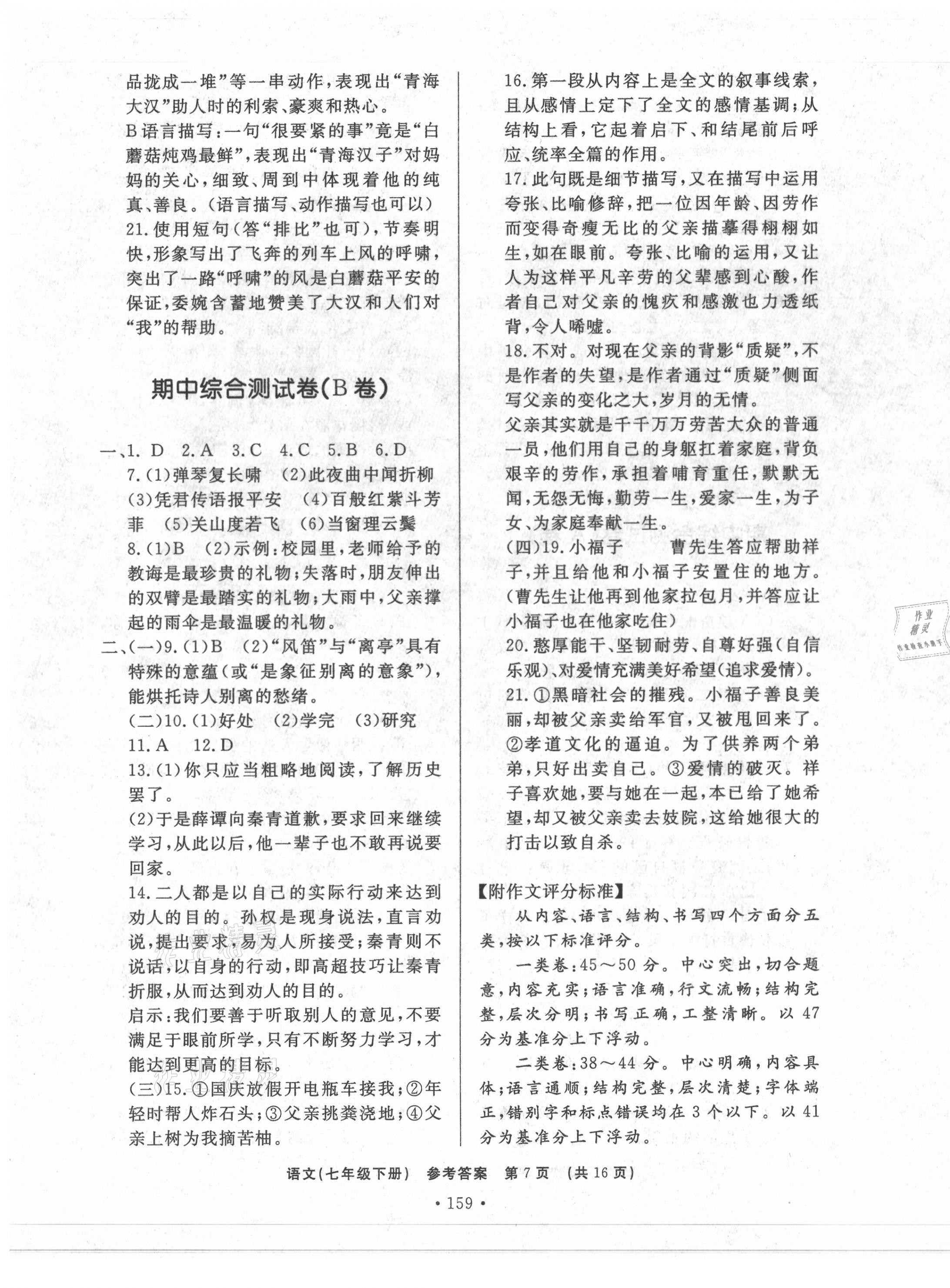 注:目前有些书本章节名称可能整理的还不是很完善,但都是按照顺序排列的,请同学们按照顺序仔细查找。练习册 2021年初中知识与能力测试卷七年级语文下册人教版 答案主要是用来给同学们做完题方便对答案用的,请勿直接抄袭。