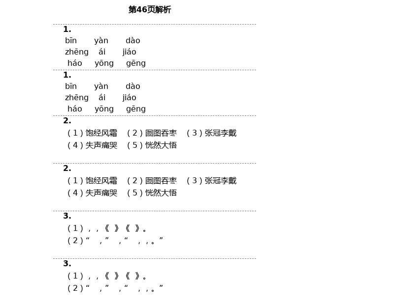 注:目前有些书本章节名称可能整理的还不是很完善,但都是按照顺序排列的,请同学们按照顺序仔细查找。练习册 2021年中学生世界六年级语文上下册人教版54制 答案主要是用来给同学们做完题方便对答案用的,请勿直接抄袭。