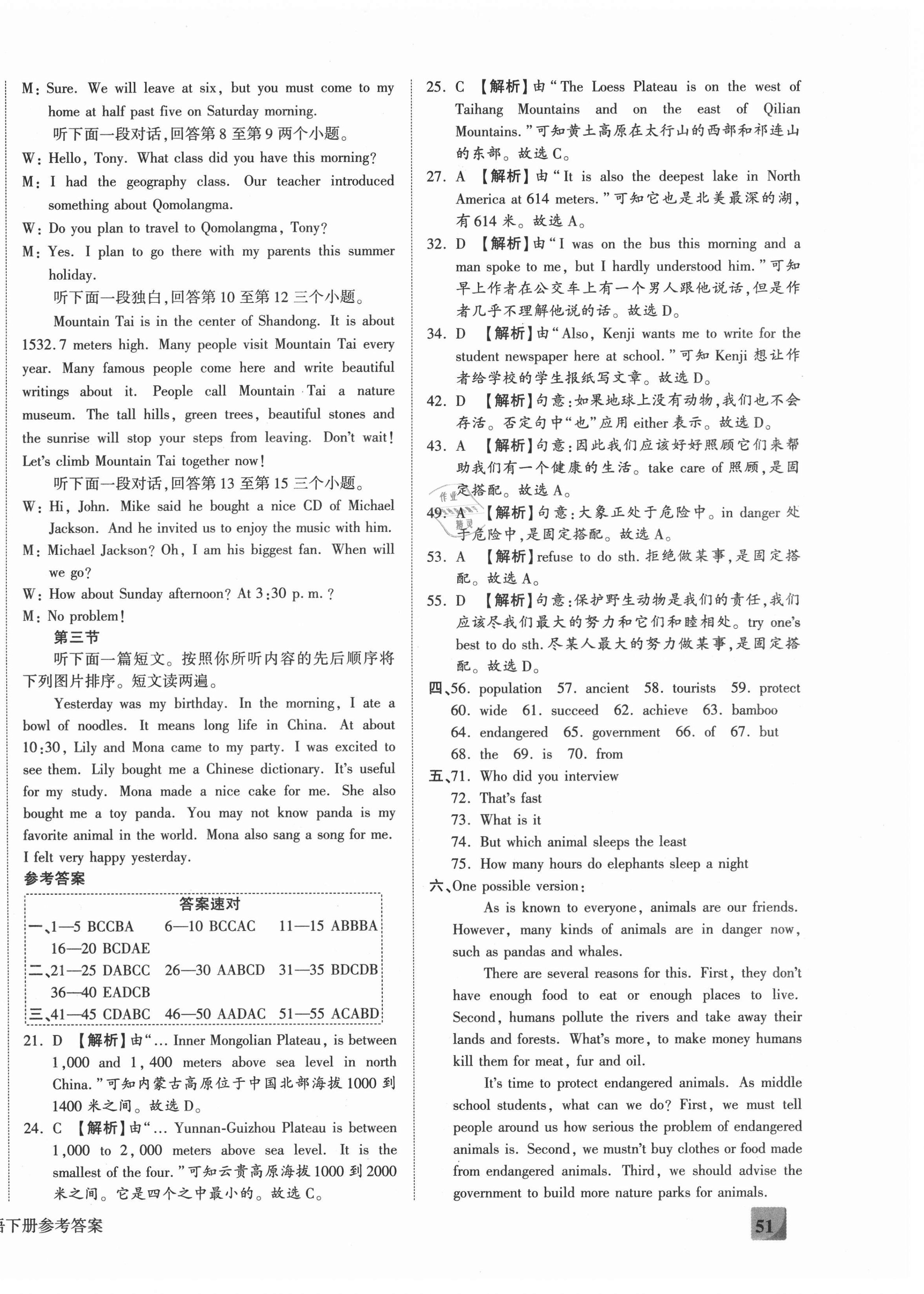 注:目前有些书本章节名称可能整理的还不是很完善,但都是按照顺序排列的,请同学们按照顺序仔细查找。练习册 2021年全程无忧提优卷八年级英语下册人教版 答案主要是用来给同学们做完题方便对答案用的,请勿直接抄袭。