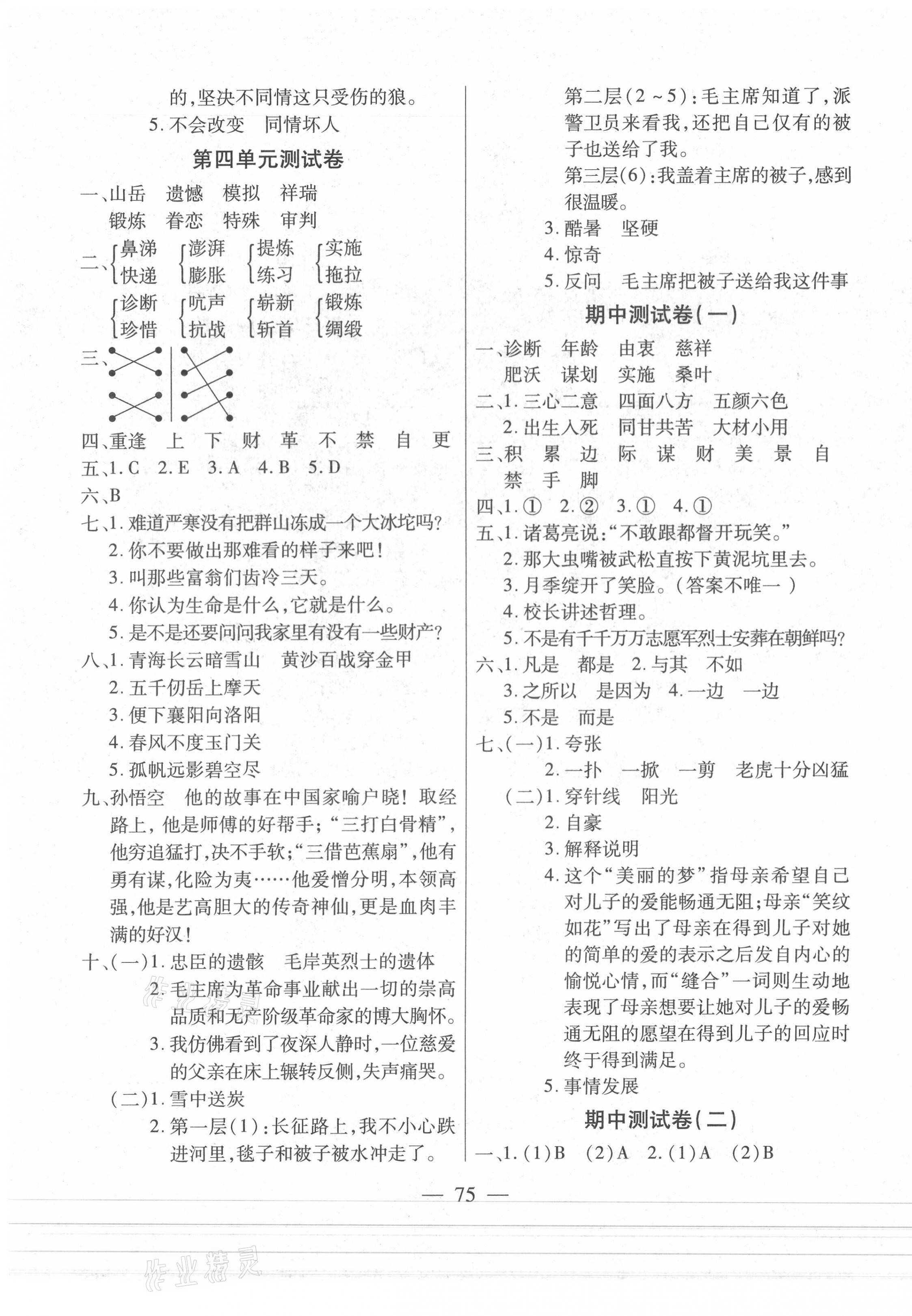 注:目前有些书本章节名称可能整理的还不是很完善,但都是按照顺序排列的,请同学们按照顺序仔细查找。练习册 2021年全优100分五年级语文下册人教版 答案主要是用来给同学们做完题方便对答案用的,请勿直接抄袭。
