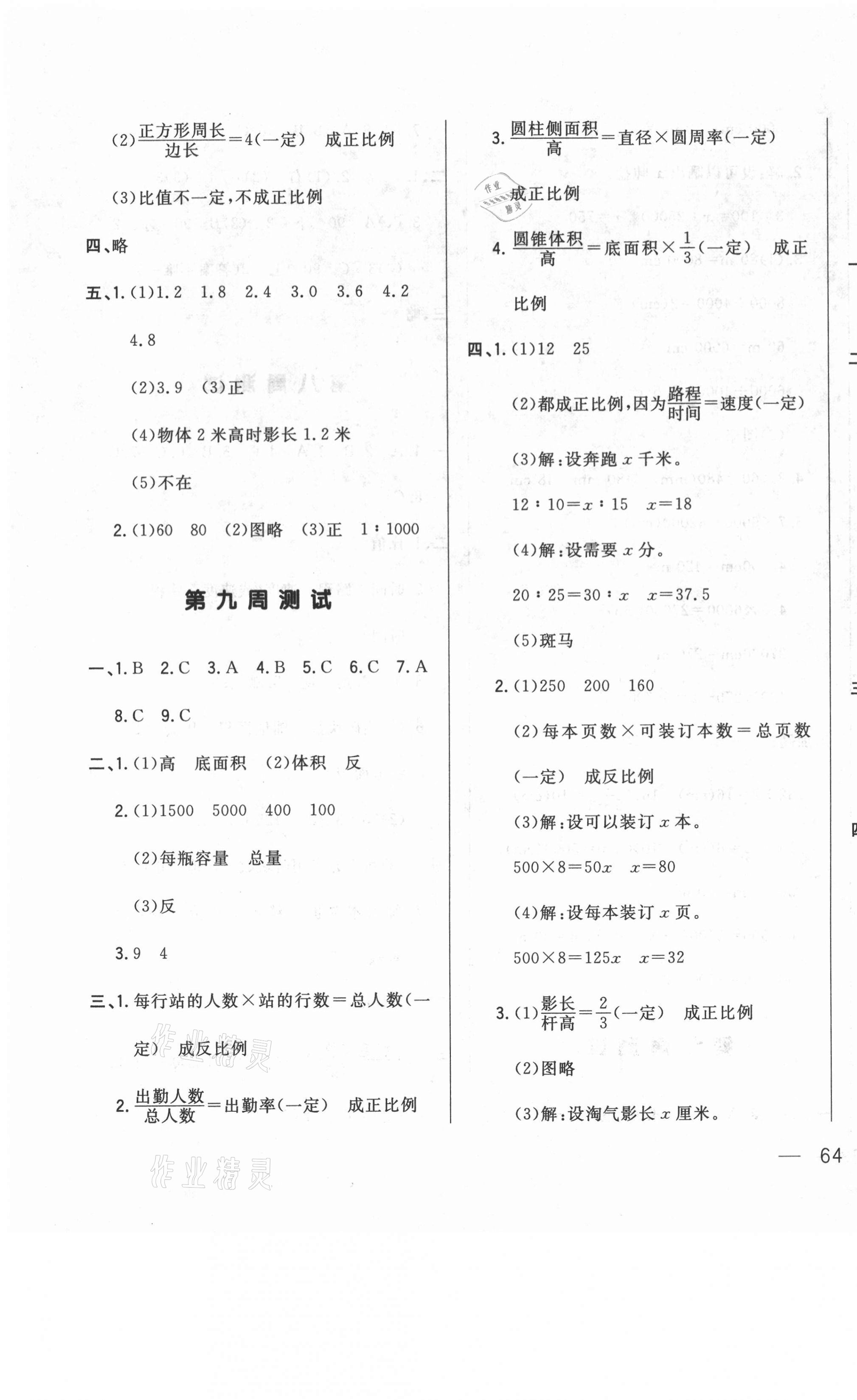 《2021年悦然好学生周周测六年级数学下册北师大版》