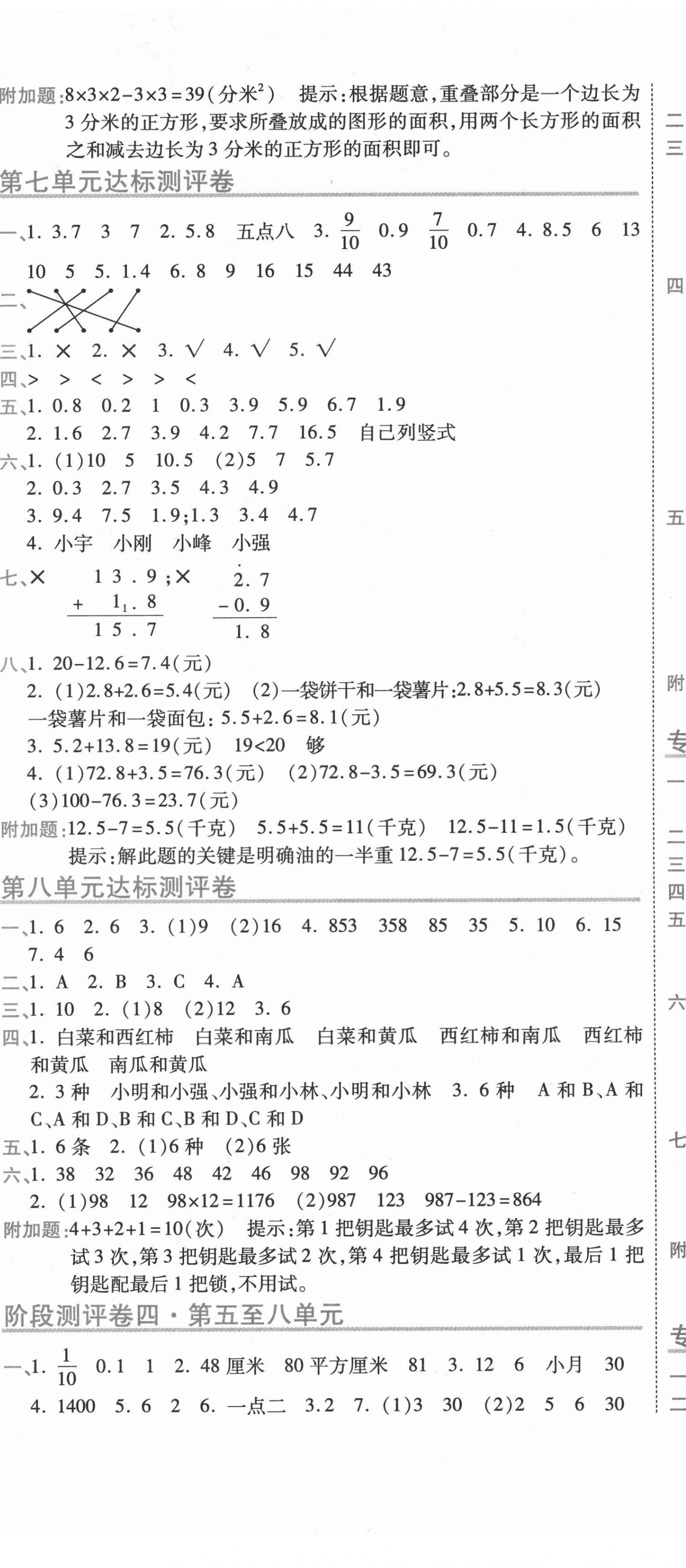 注:目前有些书本章节名称可能整理的还不是很完善,但都是按照顺序排列的,请同学们按照顺序仔细查找。练习册 2021年期末100分冲刺卷三年级数学下册人教版 答案主要是用来给同学们做完题方便对答案用的,请勿直接抄袭。