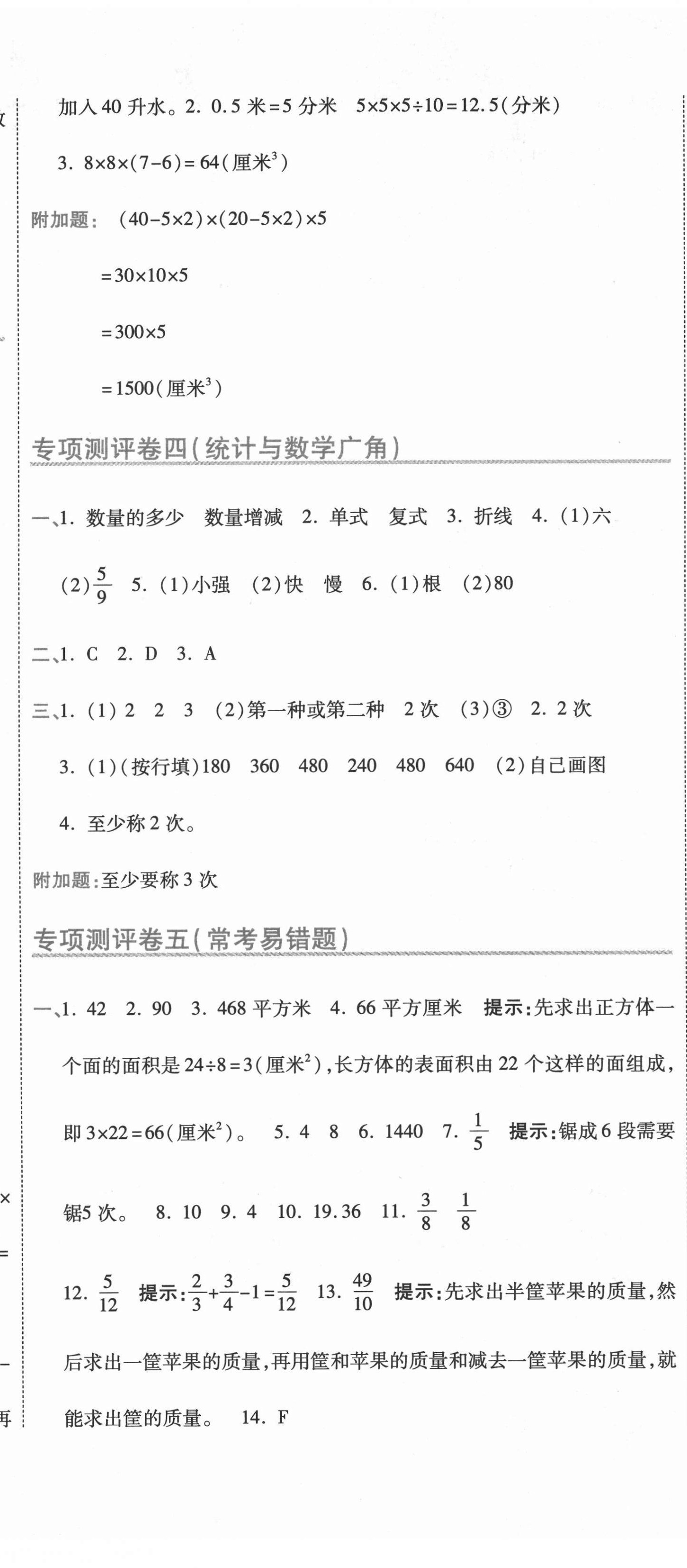 注:目前有些书本章节名称可能整理的还不是很完善,但都是按照顺序排列的,请同学们按照顺序仔细查找。练习册 2021年期末100分冲刺卷五年级数学下册人教版 答案主要是用来给同学们做完题方便对答案用的,请勿直接抄袭。