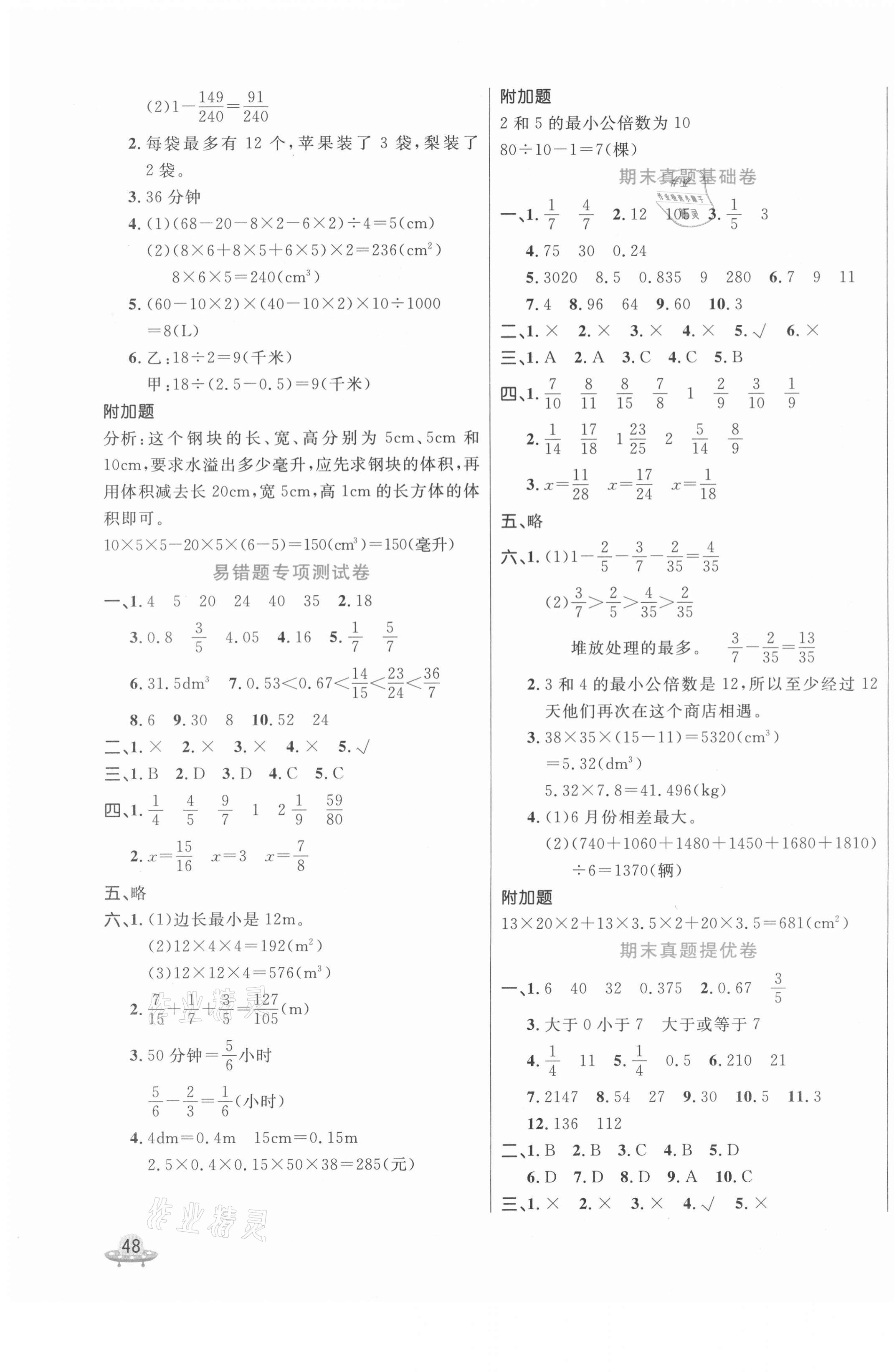 注:目前有些书本章节名称可能整理的还不是很完善,但都是按照顺序排列的,请同学们按照顺序仔细查找。练习册 2021年黄冈全优卷五年级数学下册人教版 答案主要是用来给同学们做完题方便对答案用的,请勿直接抄袭。