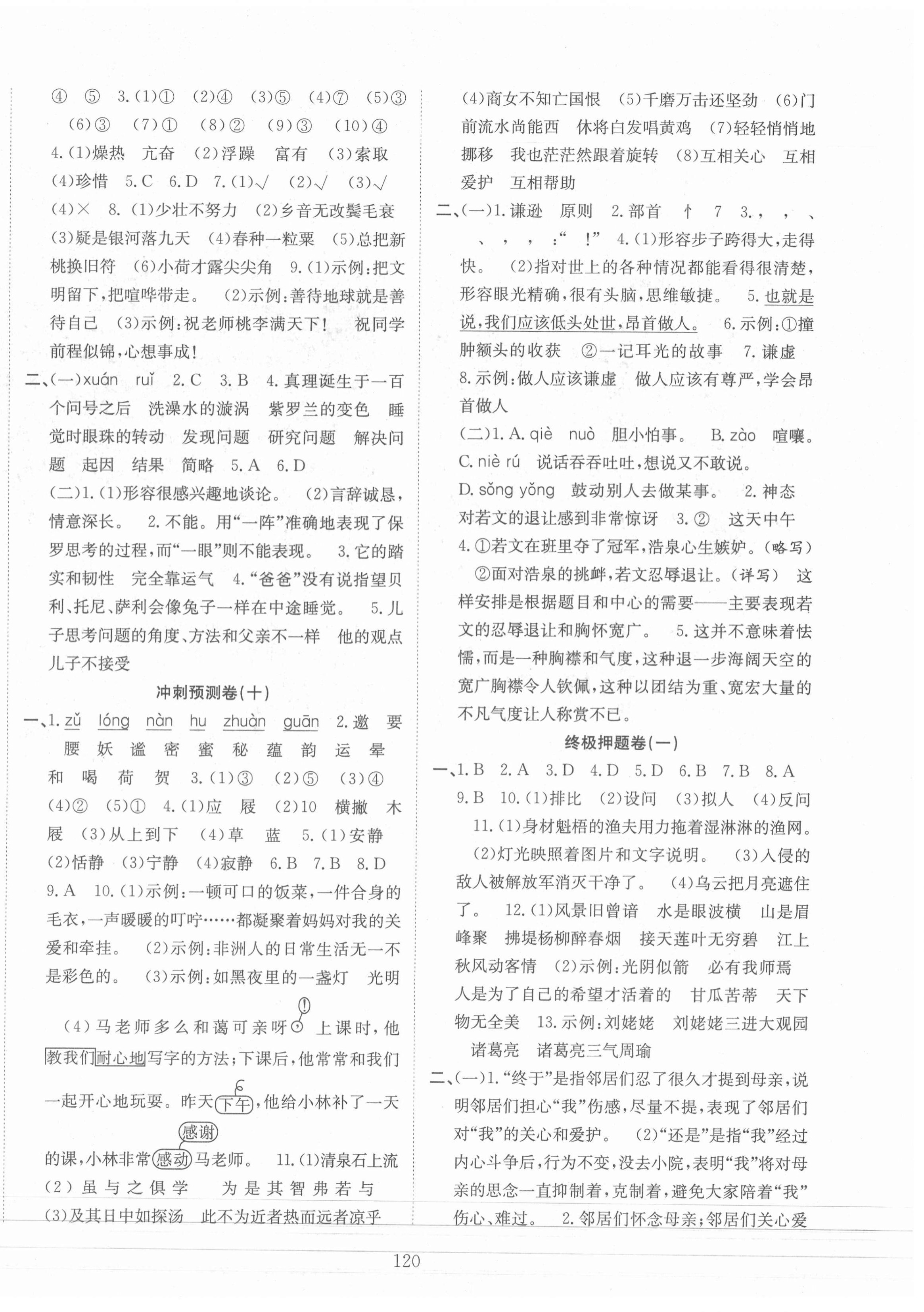 注:目前有些书本章节名称可能整理的还不是很完善,但都是按照顺序排列的,请同学们按照顺序仔细查找。练习册 2021年小考金卷王语文 答案主要是用来给同学们做完题方便对答案用的,请勿直接抄袭。