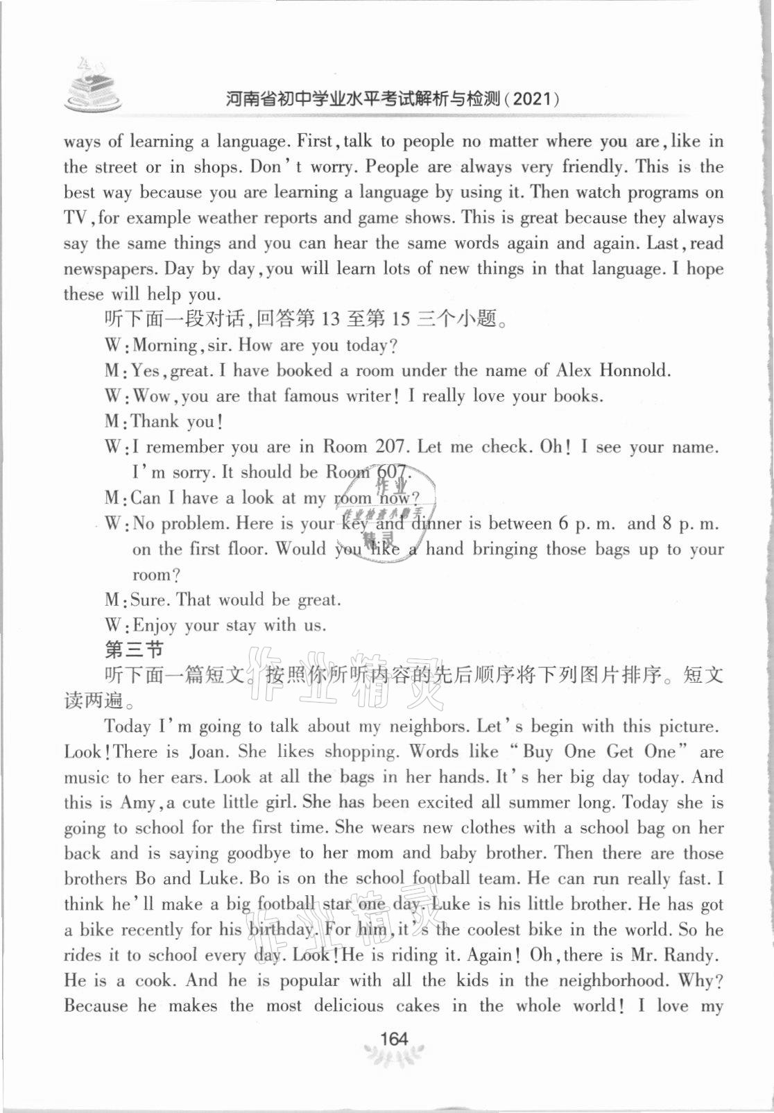 注:目前有些书本章节名称可能整理的还不是很完善,但都是按照顺序排列的,请同学们按照顺序仔细查找。练习册 2021年河南省初中学业水平考试解析与检测英语上册 答案主要是用来给同学们做完题方便对答案用的,请勿直接抄袭。