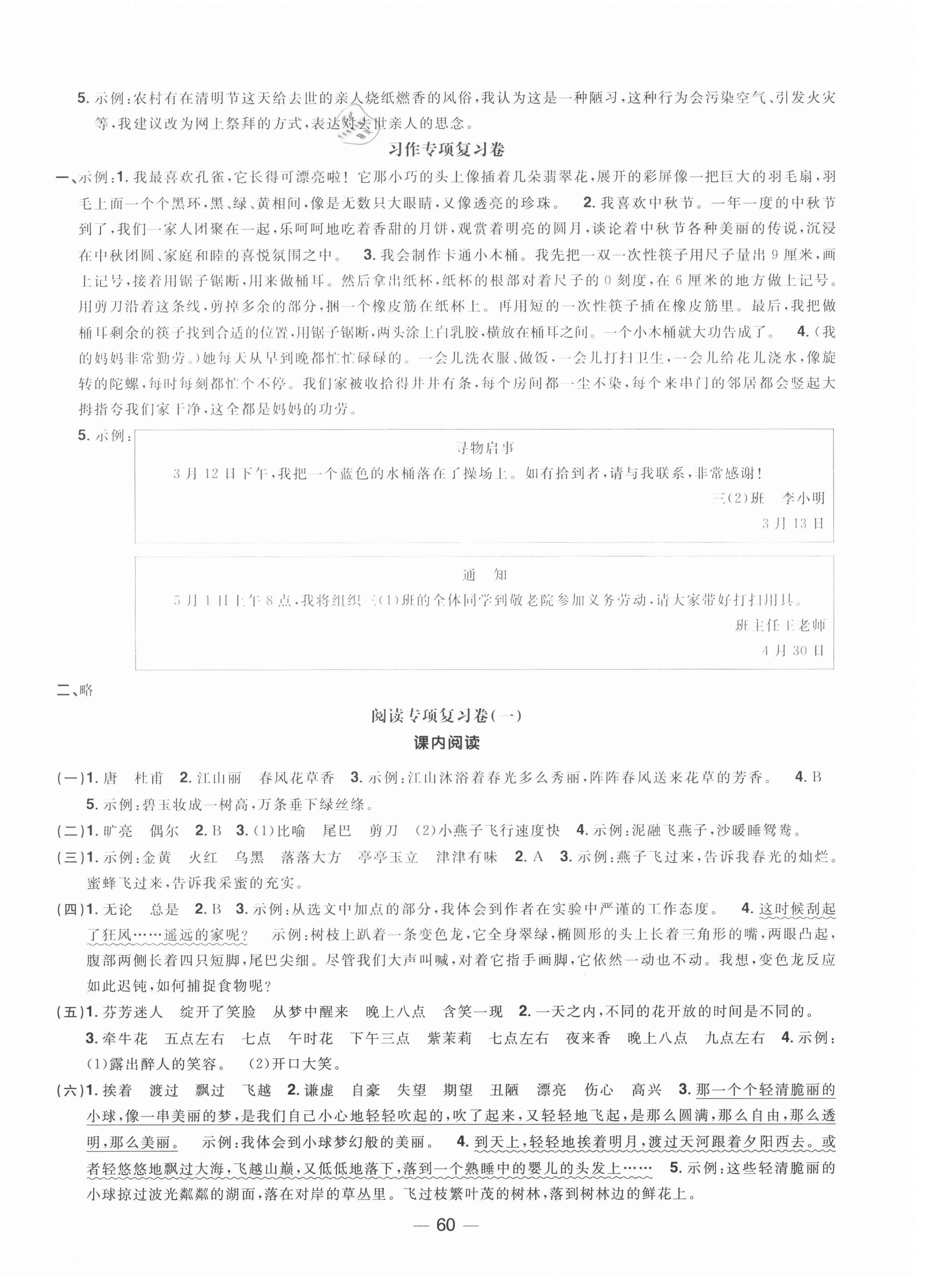 注:目前有些书本章节名称可能整理的还不是很完善,但都是按照顺序排列的,请同学们按照顺序仔细查找。练习册 2021年阳光同学期末复习15天冲刺100分三年级语文下册人教版 答案主要是用来给同学们做完题方便对答案用的,请勿直接抄袭。