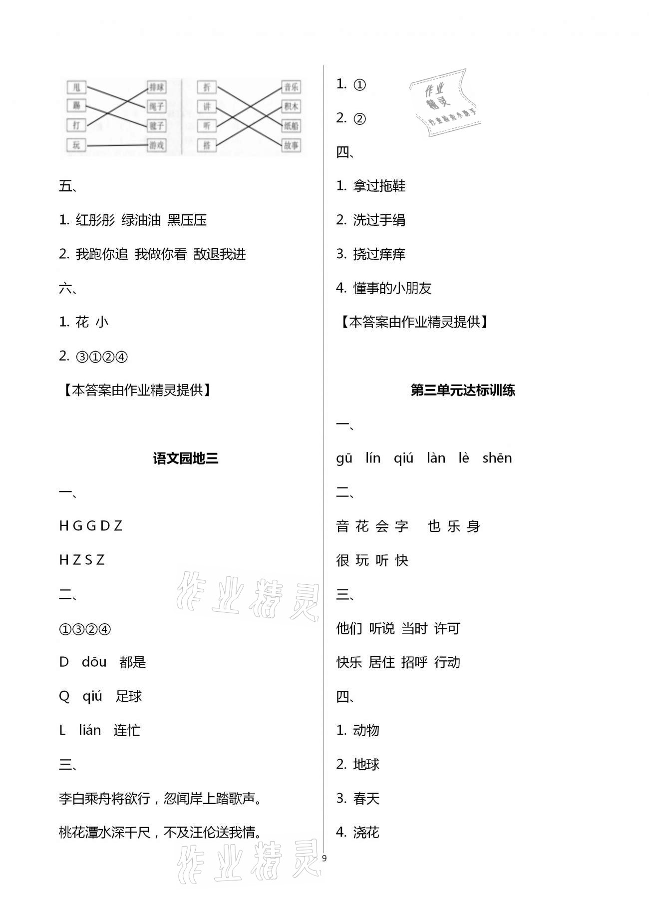 注:目前有些书本章节名称可能整理的还不是很完善,但都是按照顺序排列的,请同学们按照顺序仔细查找。练习册 2021年新课程学习指导一年级语文下册人教版南方出版社 答案主要是用来给同学们做完题方便对答案用的,请勿直接抄袭。