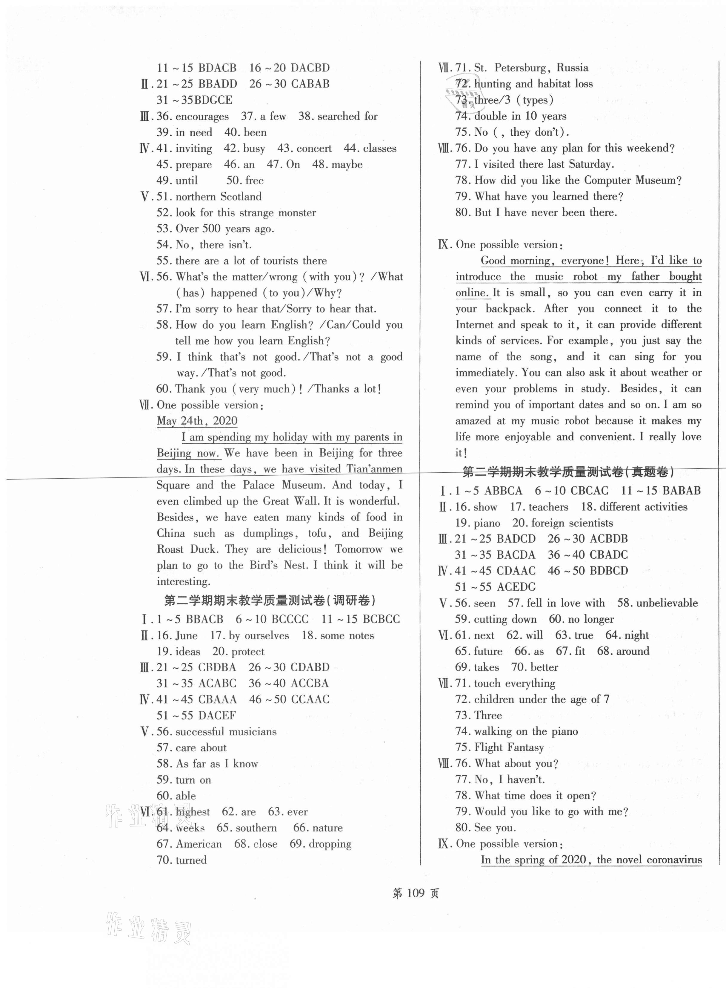 注:目前有些书本章节名称可能整理的还不是很完善,但都是按照顺序排列的,请同学们按照顺序仔细查找。练习册 2021年名师指导夺冠密卷八年级英语下册人教版陕西专版 答案主要是用来给同学们做完题方便对答案用的,请勿直接抄袭。