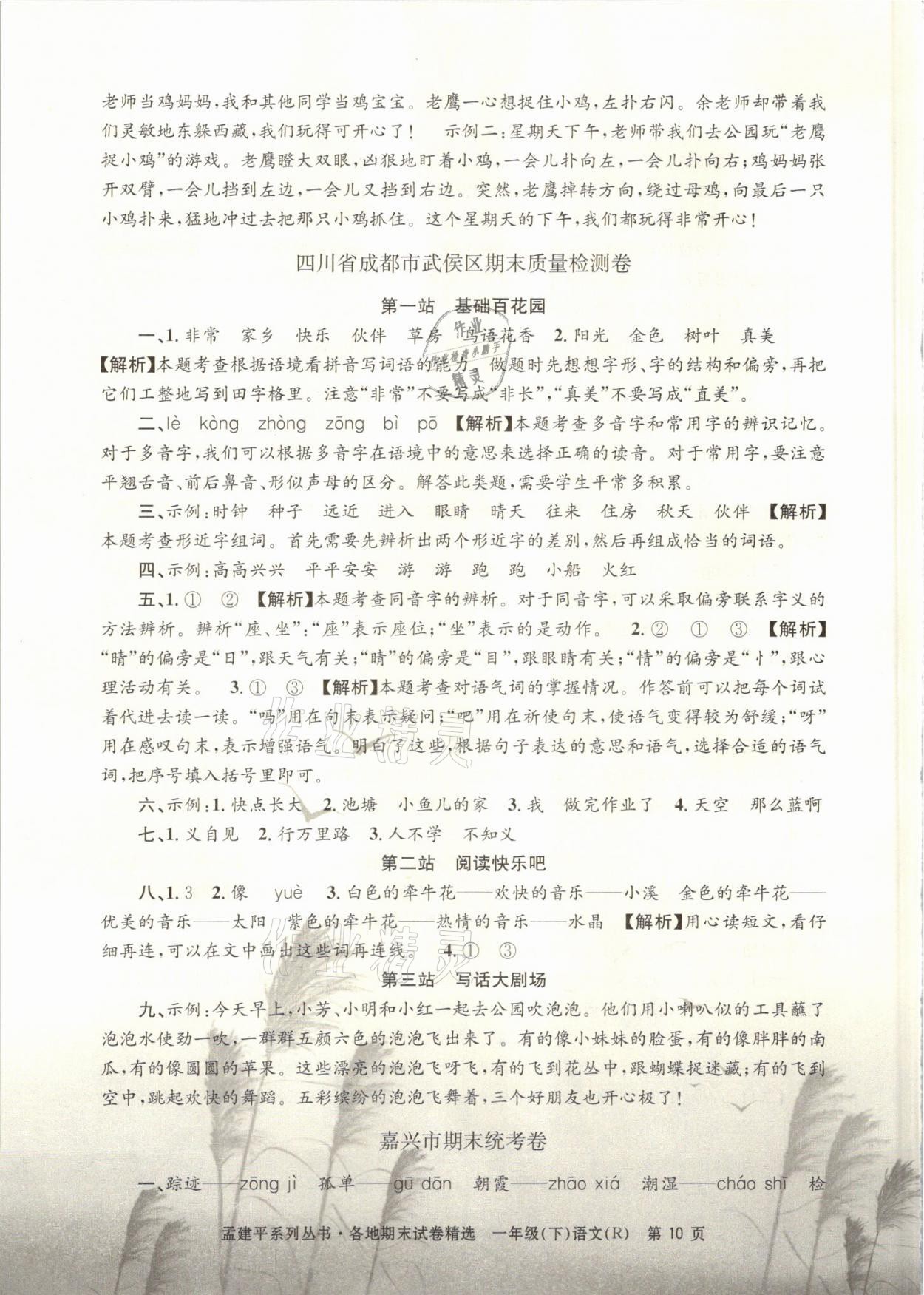 2021年孟建平各地期末试卷精选一年级语文下册人教版