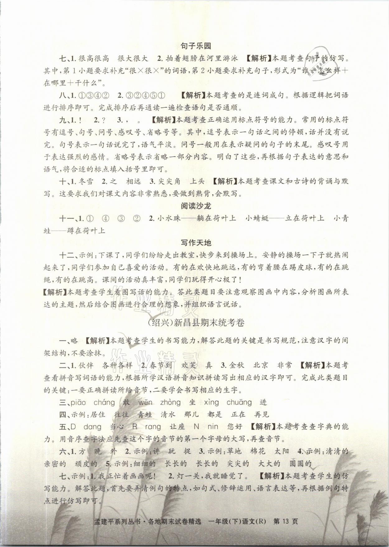 注:目前有些书本章节名称可能整理的还不是很完善,但都是按照顺序排列的,请同学们按照顺序仔细查找。练习册 2021年孟建平各地期末试卷精选一年级语文下册人教版 答案主要是用来给同学们做完题方便对答案用的,请勿直接抄袭。