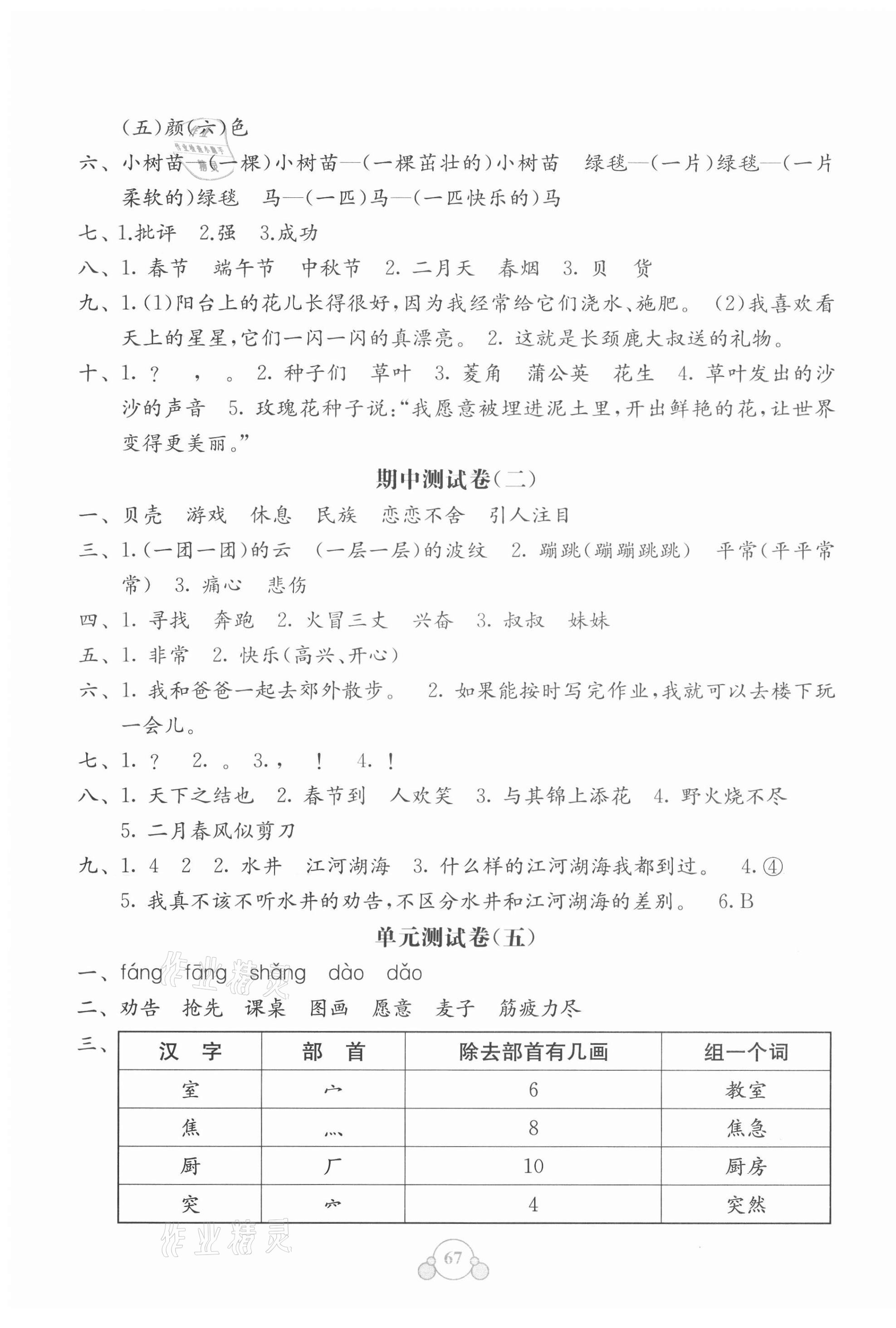 注:目前有些书本章节名称可能整理的还不是很完善,但都是按照顺序排列的,请同学们按照顺序仔细查找。练习册 2021年自主学习能力测评单元测试二年级语文下册A版 答案主要是用来给同学们做完题方便对答案用的,请勿直接抄袭。