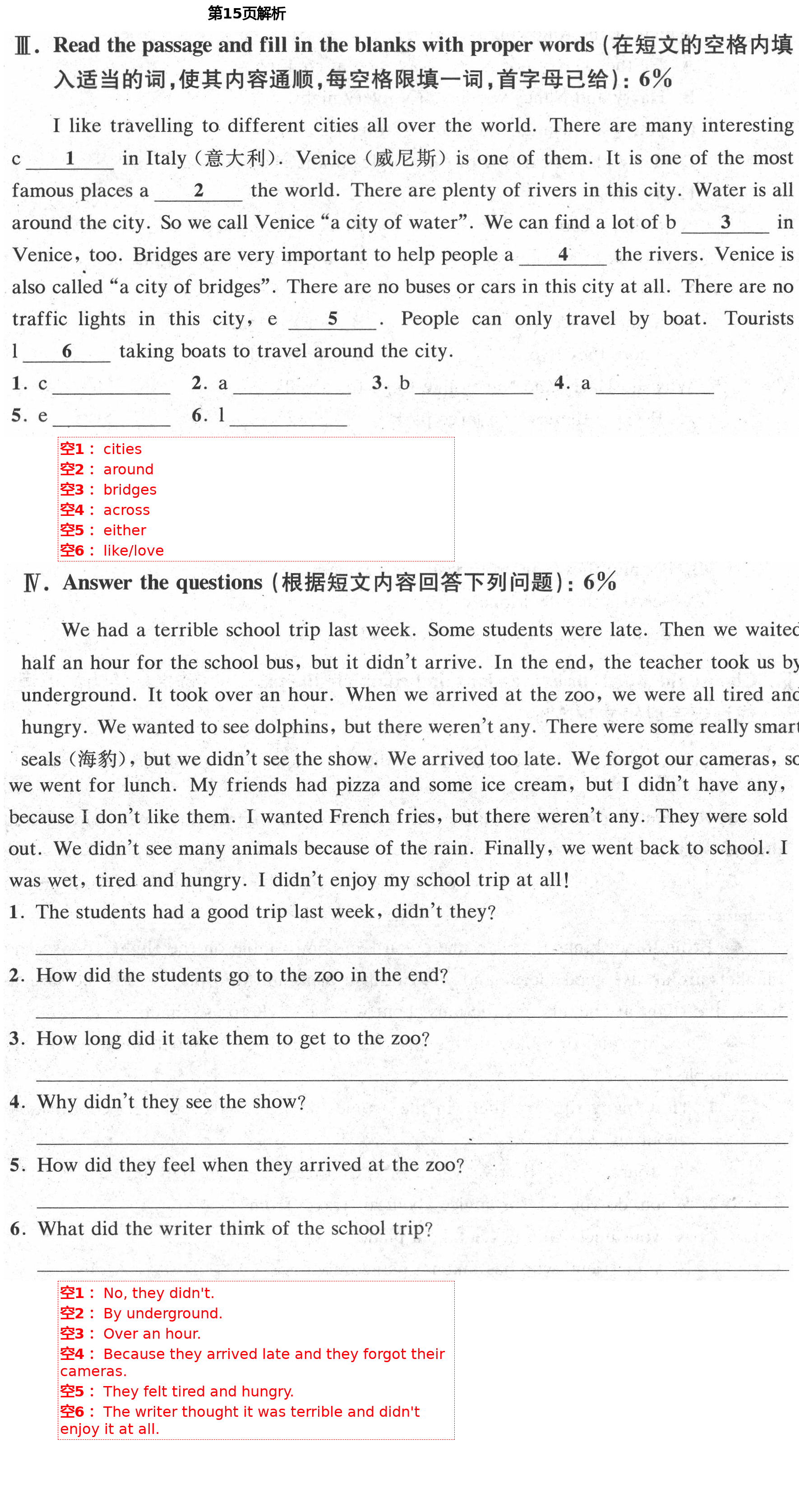 注:目前有些书本章节名称可能整理的还不是很完善,但都是按照顺序排列的,请同学们按照顺序仔细查找。练习册 2021年优学先导教学与测评六年级英语下册沪教版54制 答案主要是用来给同学们做完题方便对答案用的,请勿直接抄袭。