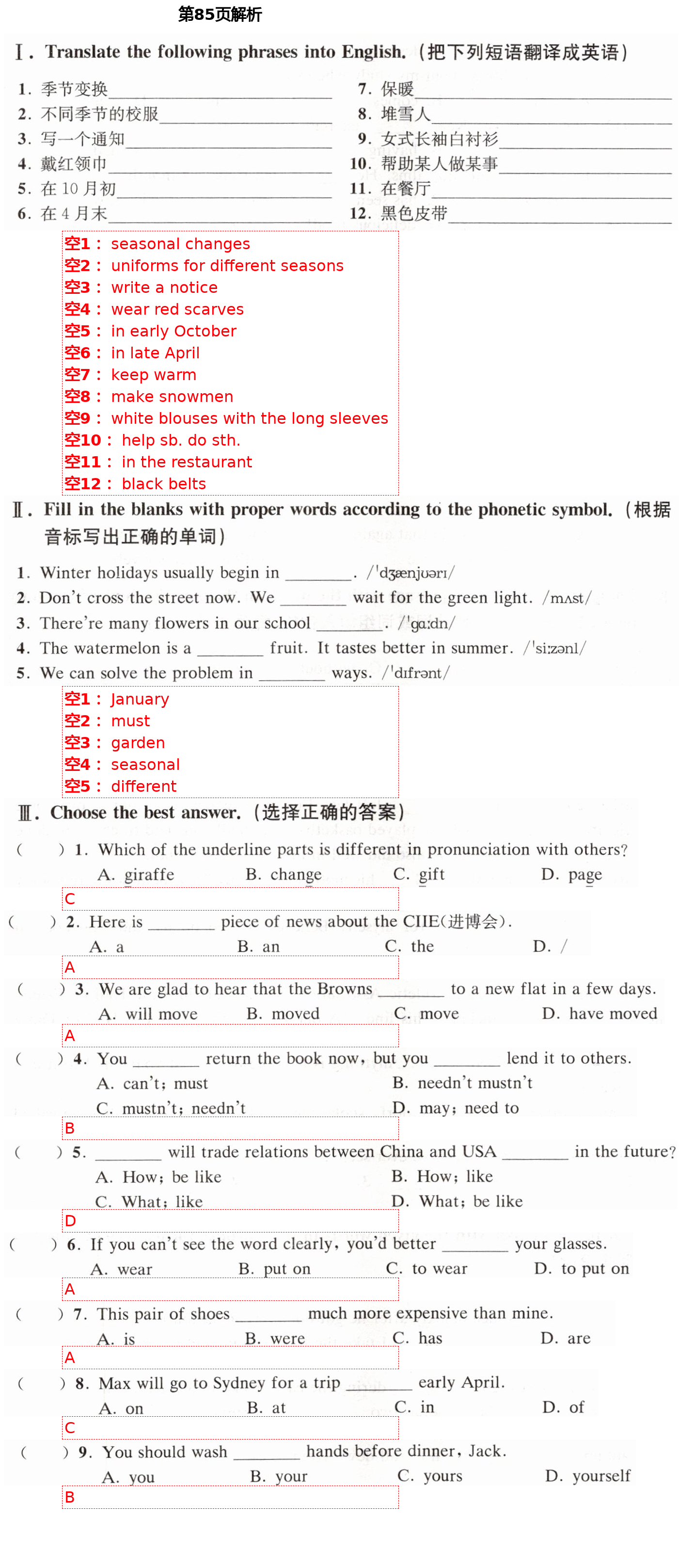 注:目前有些书本章节名称可能整理的还不是很完善,但都是按照顺序排列的,请同学们按照顺序仔细查找。练习册 2021年全优课堂六年级英语第二学期沪教版54制 答案主要是用来给同学们做完题方便对答案用的,请勿直接抄袭。