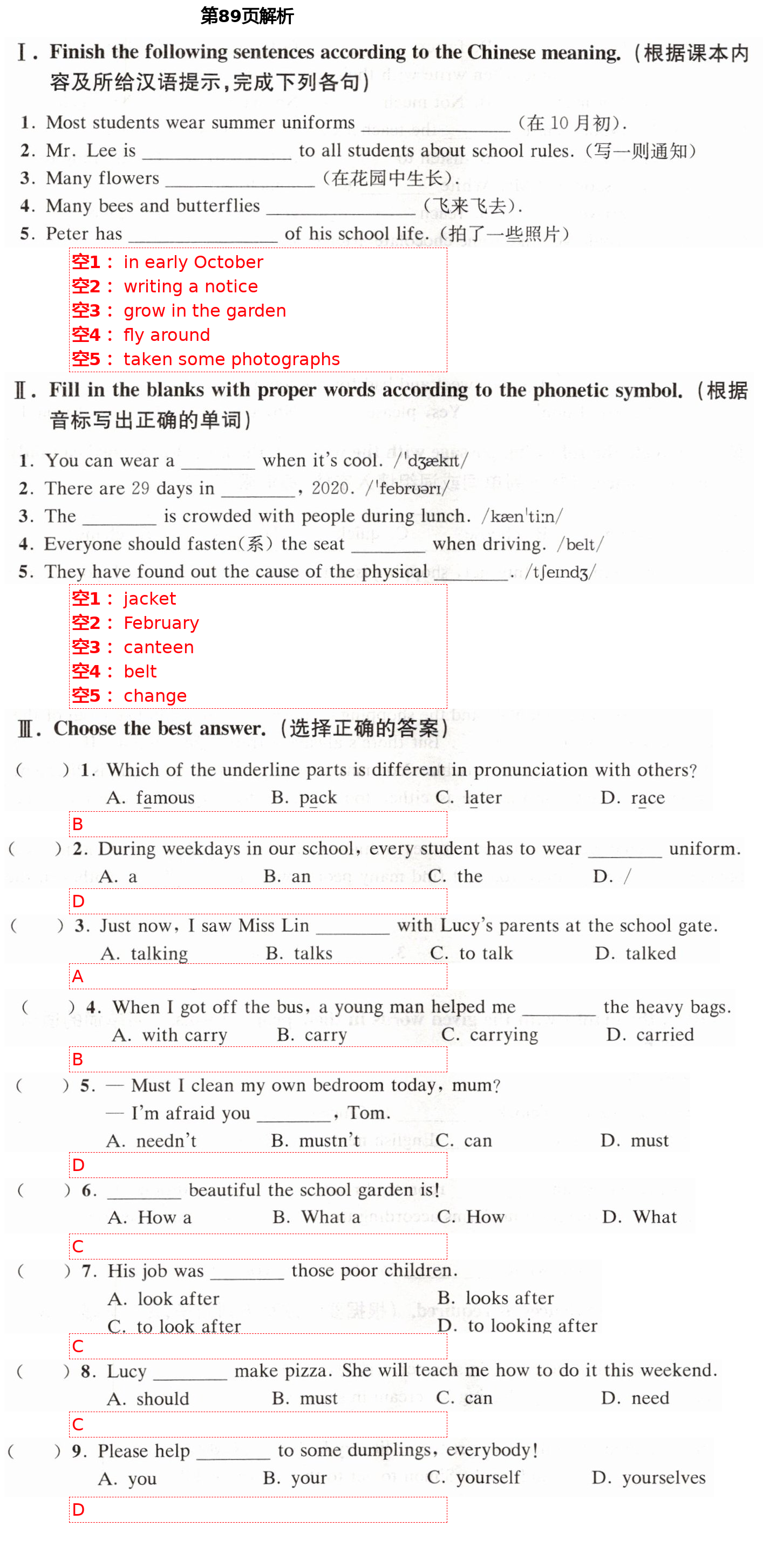 注:目前有些书本章节名称可能整理的还不是很完善,但都是按照顺序排列的,请同学们按照顺序仔细查找。练习册 2021年全优课堂六年级英语第二学期沪教版54制 答案主要是用来给同学们做完题方便对答案用的,请勿直接抄袭。