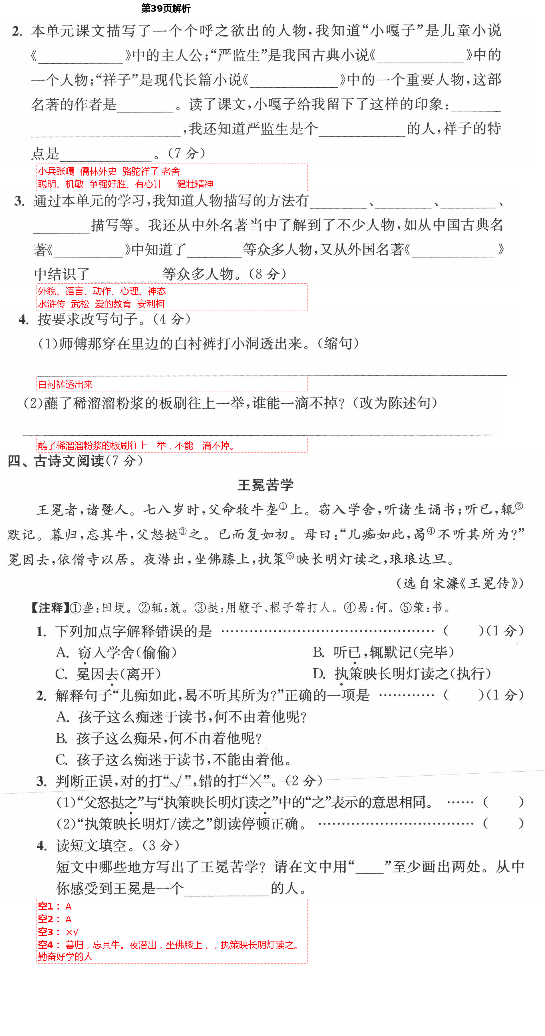 注:目前有些书本章节名称可能整理的还不是很完善,但都是按照顺序排列的,请同学们按照顺序仔细查找。练习册 2021年小学生综合素质标准卷五年级语文下册部编版金丽衢专版 答案主要是用来给同学们做完题方便对答案用的,请勿直接抄袭。