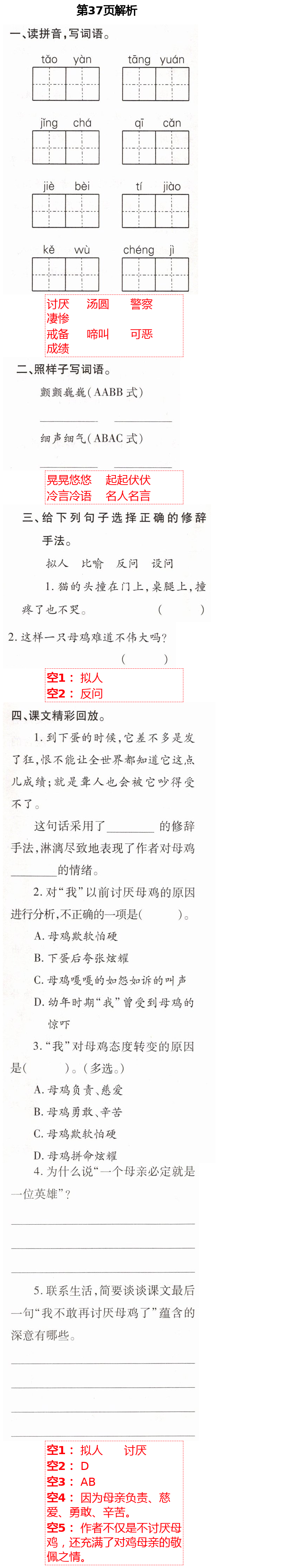 注:目前有些书本章节名称可能整理的还不是很完善,但都是按照顺序排列的,请同学们按照顺序仔细查找。练习册 2021年新课堂同步学习与探究四年级语文下册人教版54制泰安专版 答案主要是用来给同学们做完题方便对答案用的,请勿直接抄袭。