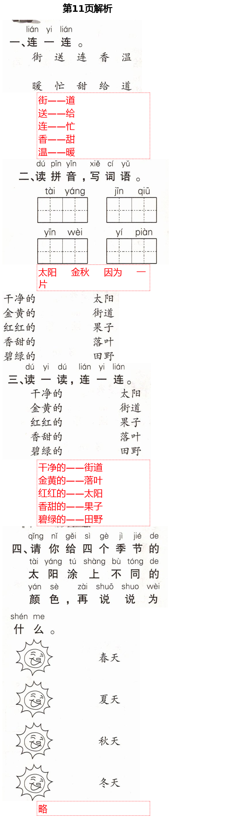 注:目前有些书本章节名称可能整理的还不是很完善,但都是按照顺序排列的,请同学们按照顺序仔细查找。练习册 2021年新课堂同步学习与探究一年级语文下册人教版54制泰安专版 答案主要是用来给同学们做完题方便对答案用的,请勿直接抄袭。