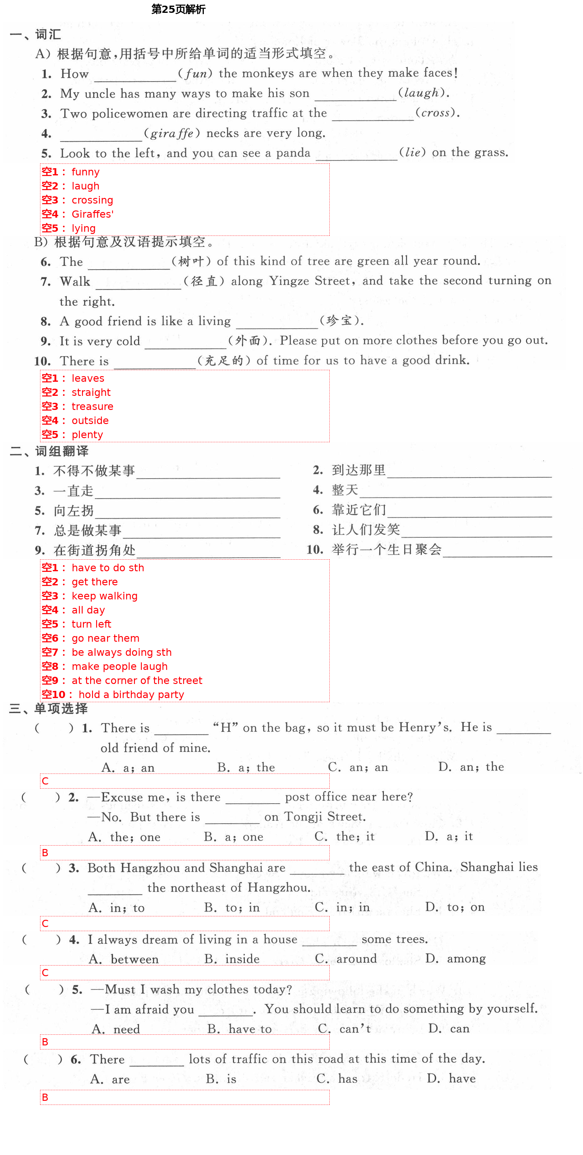注:目前有些书本章节名称可能整理的还不是很完善,但都是按照顺序排列的,请同学们按照顺序仔细查找。练习册 2021年绿色成长互动空间配套练习七年级英语下册译林版 答案主要是用来给同学们做完题方便对答案用的,请勿直接抄袭。