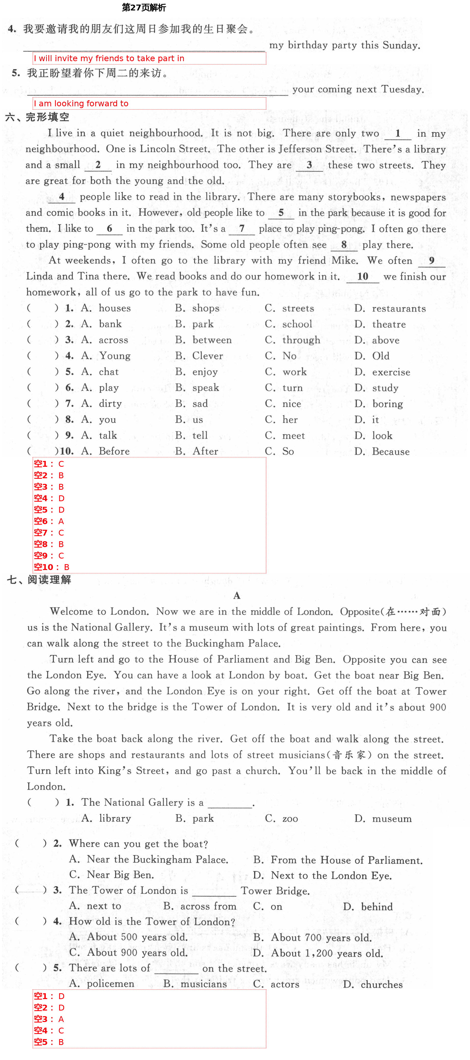 注:目前有些书本章节名称可能整理的还不是很完善,但都是按照顺序排列的,请同学们按照顺序仔细查找。练习册 2021年绿色成长互动空间配套练习七年级英语下册译林版 答案主要是用来给同学们做完题方便对答案用的,请勿直接抄袭。