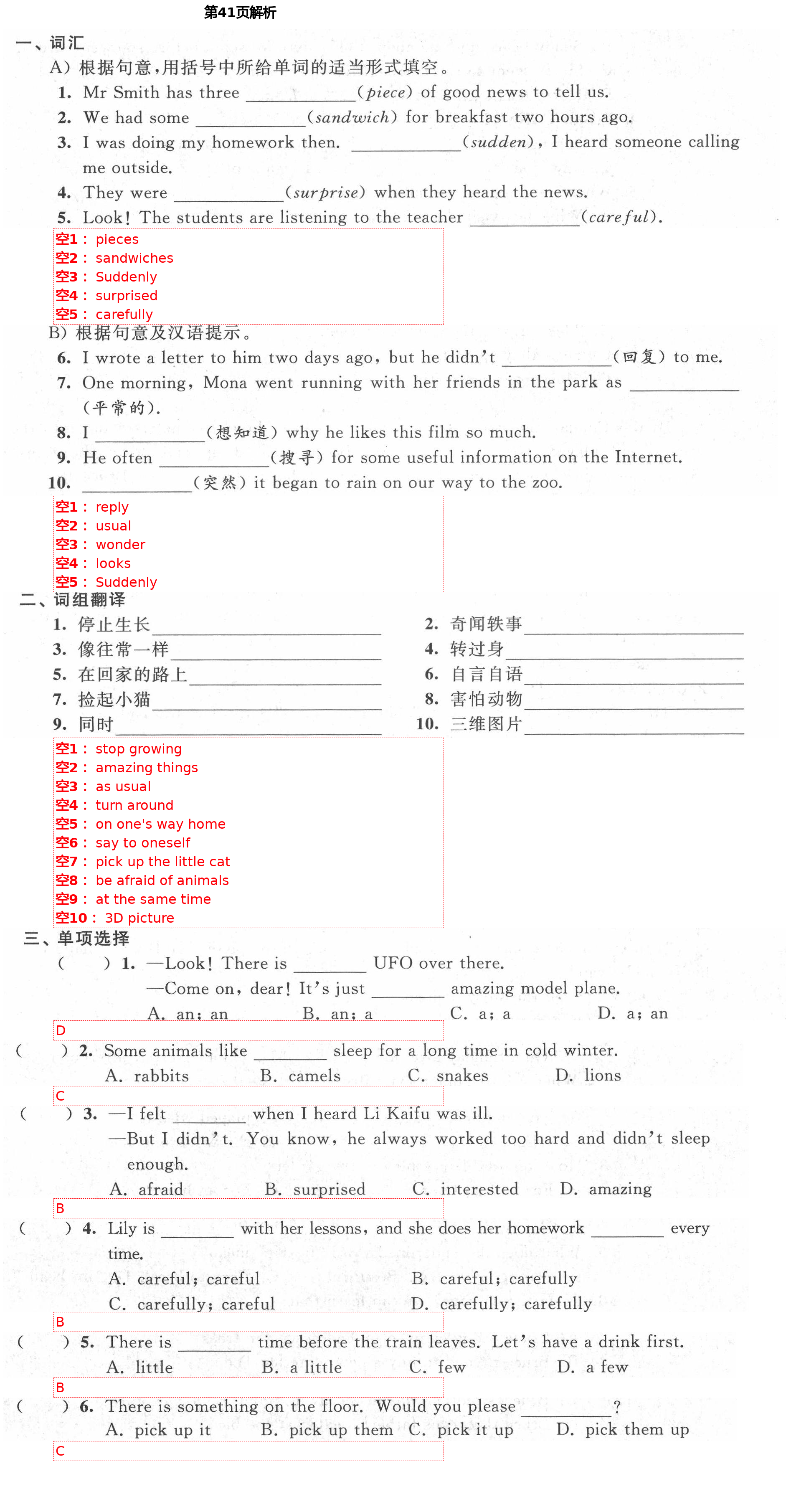 注:目前有些书本章节名称可能整理的还不是很完善,但都是按照顺序排列的,请同学们按照顺序仔细查找。练习册 2021年绿色成长互动空间配套练习七年级英语下册译林版 答案主要是用来给同学们做完题方便对答案用的,请勿直接抄袭。