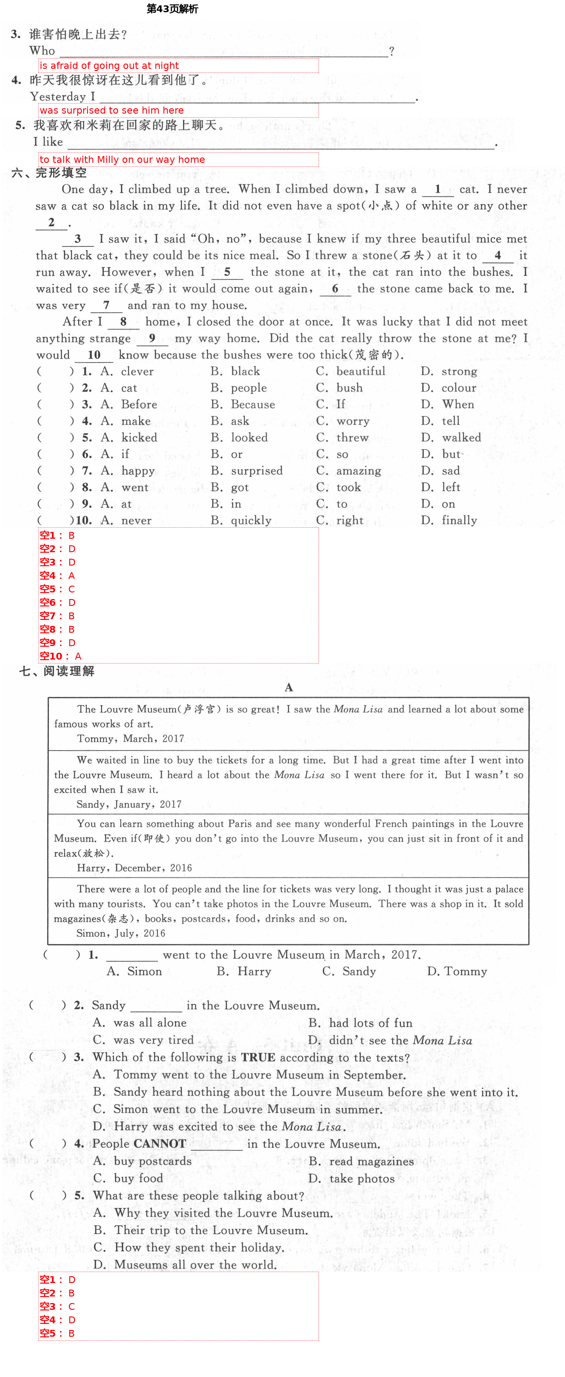 注:目前有些书本章节名称可能整理的还不是很完善,但都是按照顺序排列的,请同学们按照顺序仔细查找。练习册 2021年绿色成长互动空间配套练习七年级英语下册译林版 答案主要是用来给同学们做完题方便对答案用的,请勿直接抄袭。