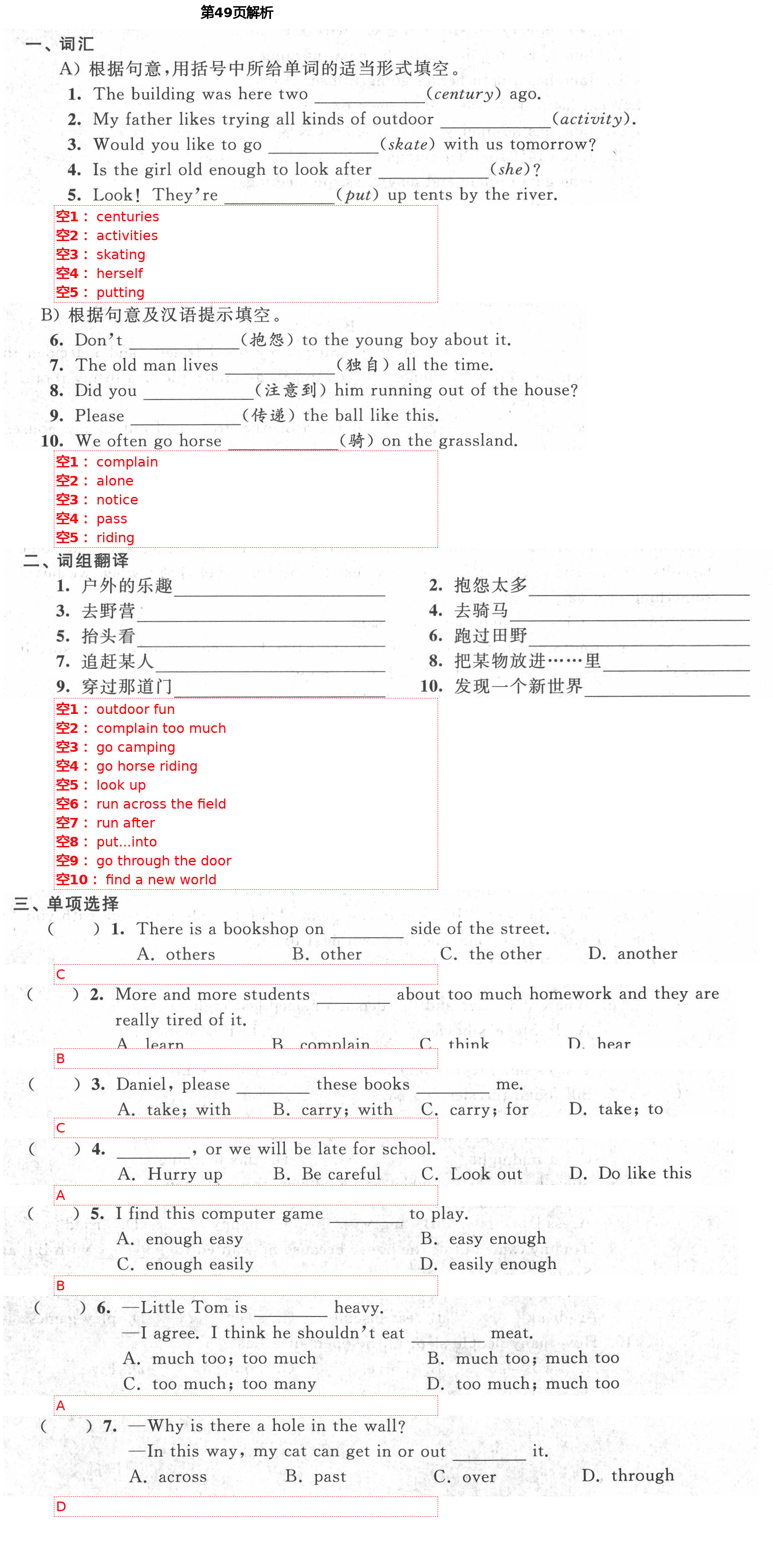 注:目前有些书本章节名称可能整理的还不是很完善,但都是按照顺序排列的,请同学们按照顺序仔细查找。练习册 2021年绿色成长互动空间配套练习七年级英语下册译林版 答案主要是用来给同学们做完题方便对答案用的,请勿直接抄袭。