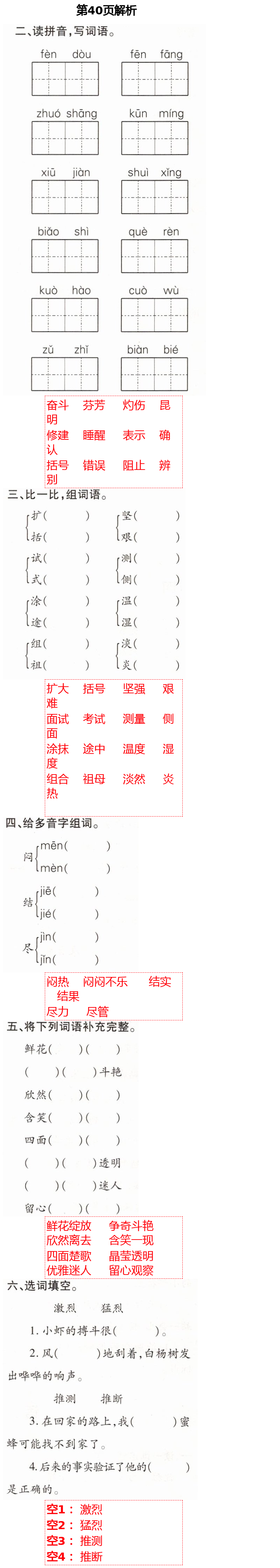 注:目前有些书本章节名称可能整理的还不是很完善,但都是按照顺序排列的,请同学们按照顺序仔细查找。练习册 2021年新课堂同步学习与探究三年级语文下册人教版54制泰安专版 答案主要是用来给同学们做完题方便对答案用的,请勿直接抄袭。