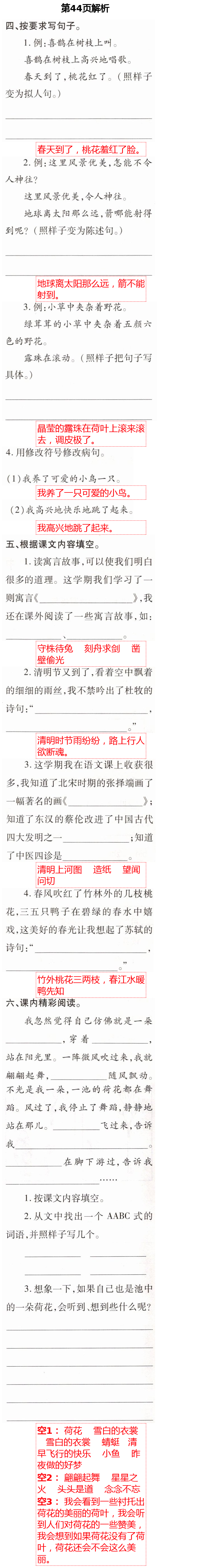 注:目前有些书本章节名称可能整理的还不是很完善,但都是按照顺序排列的,请同学们按照顺序仔细查找。练习册 2021年新课堂同步学习与探究三年级语文下册人教版54制泰安专版 答案主要是用来给同学们做完题方便对答案用的,请勿直接抄袭。