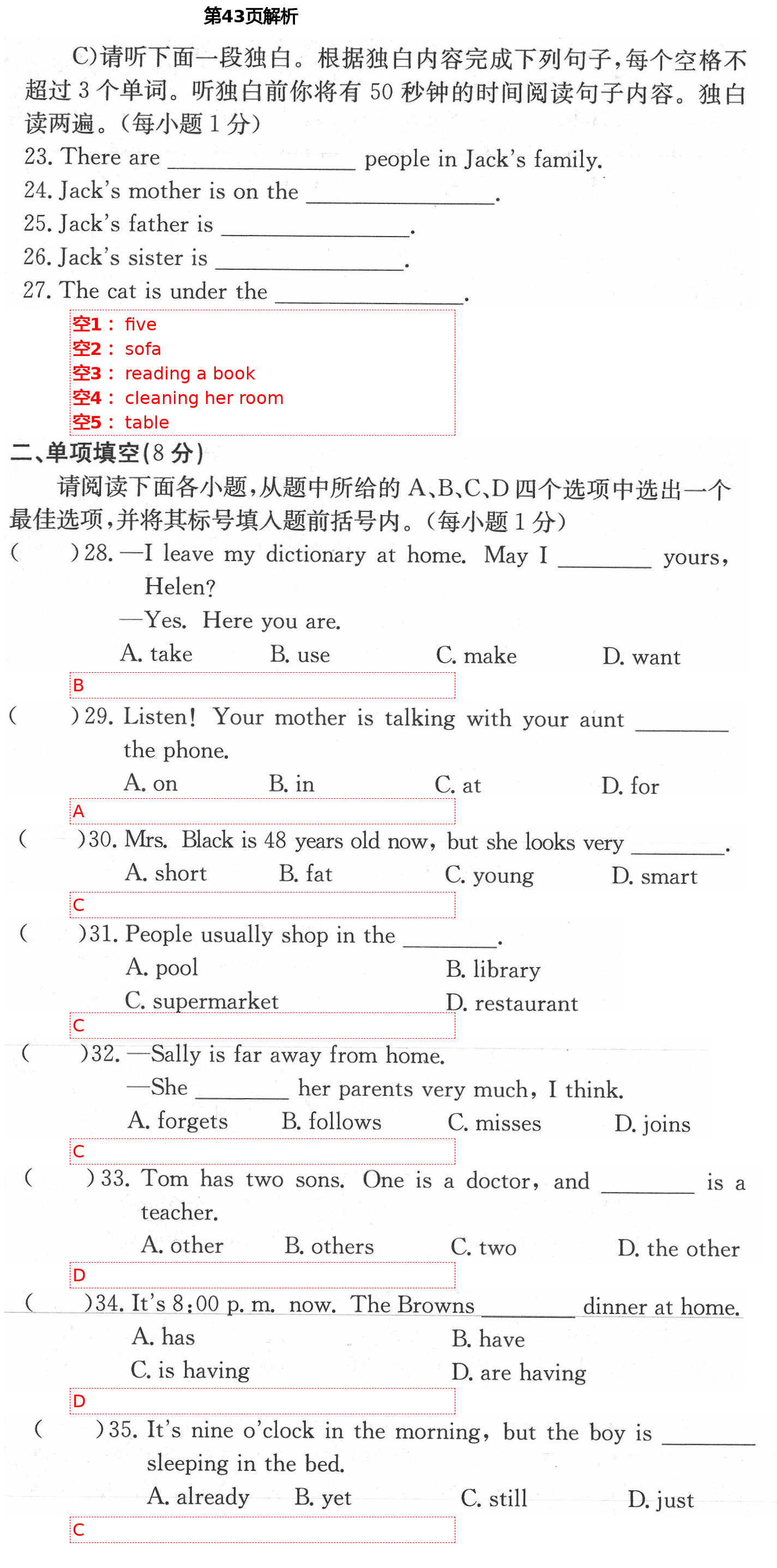 注:目前有些书本章节名称可能整理的还不是很完善,但都是按照顺序排列的,请同学们按照顺序仔细查找。练习册 2021年同步创新测试卷七年级英语下册人教版 答案主要是用来给同学们做完题方便对答案用的,请勿直接抄袭。