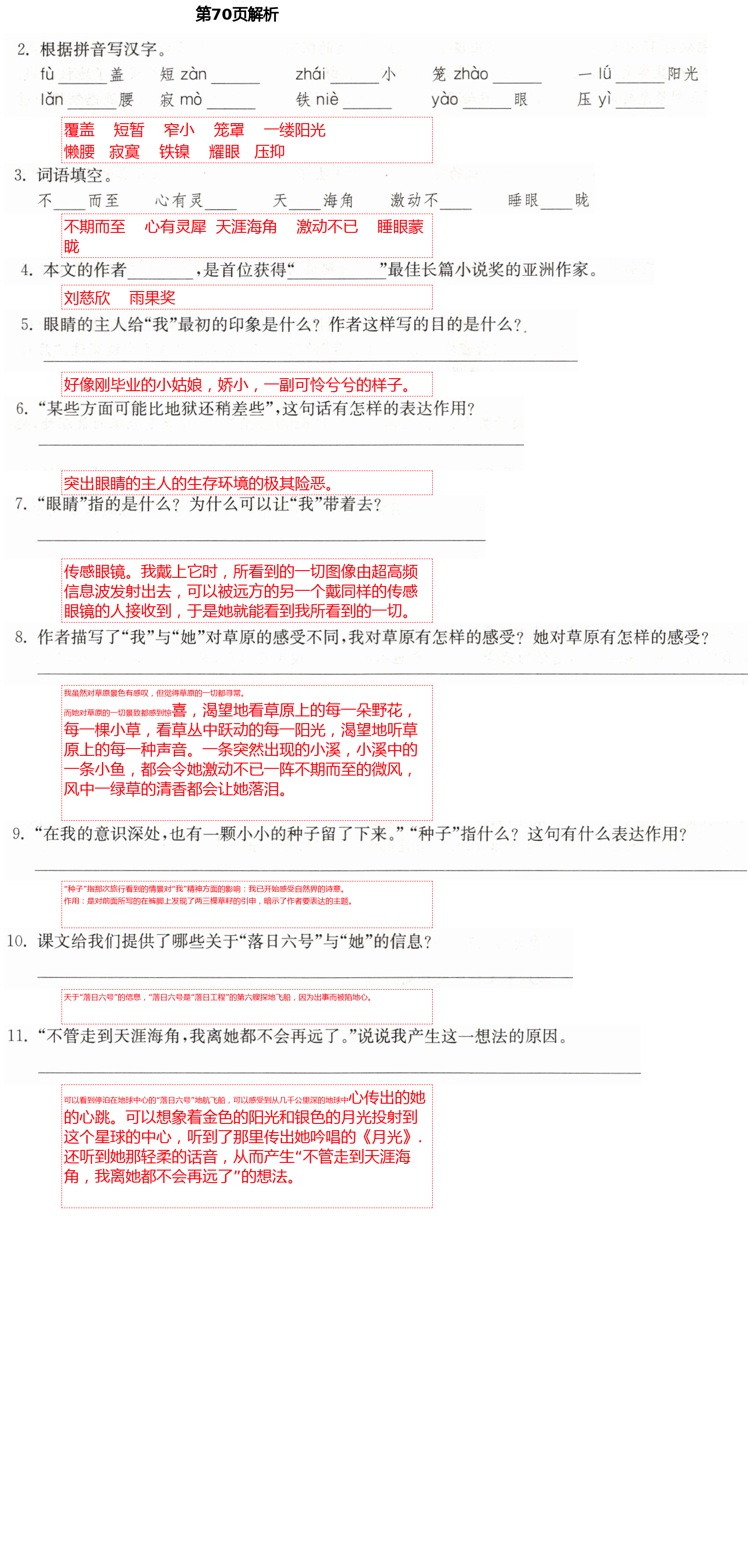 注:目前有些书本章节名称可能整理的还不是很完善,但都是按照顺序排列的,请同学们按照顺序仔细查找。练习册 2021年中学生世界七年级语文人教版54制 答案主要是用来给同学们做完题方便对答案用的,请勿直接抄袭。