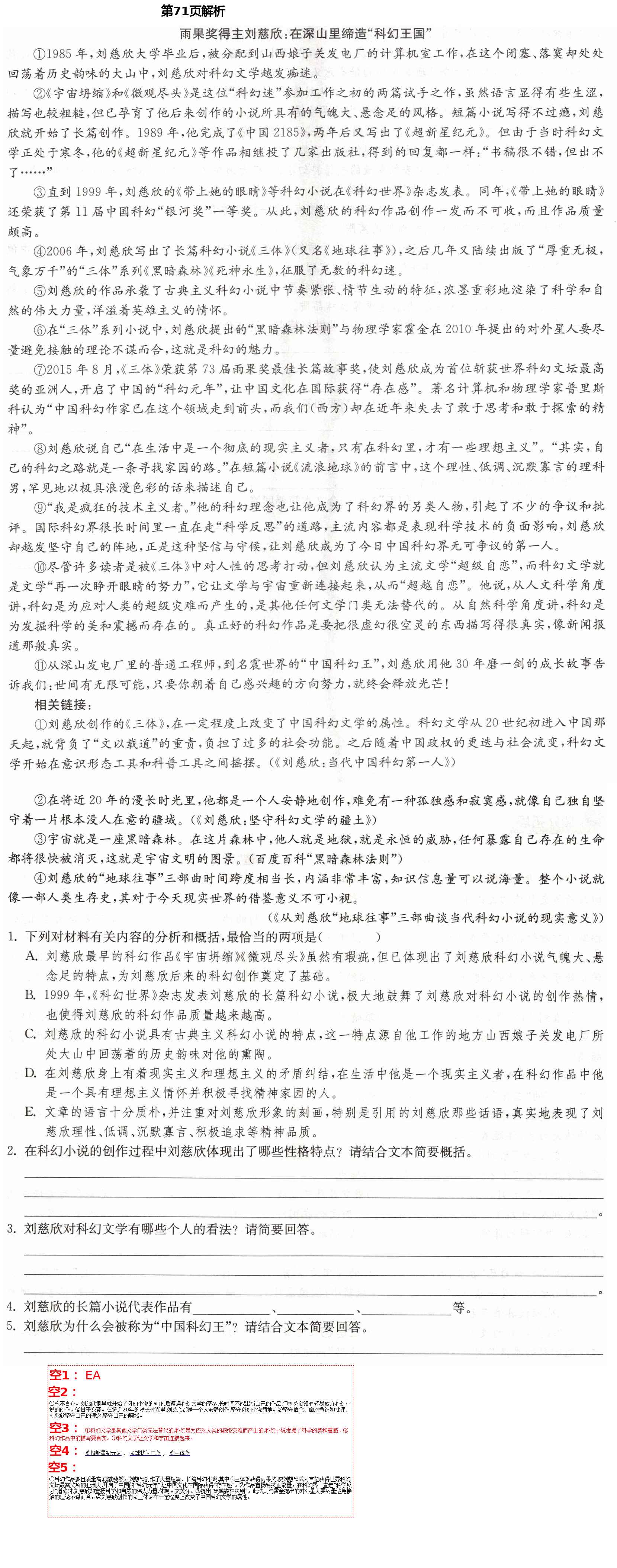 注:目前有些书本章节名称可能整理的还不是很完善,但都是按照顺序排列的,请同学们按照顺序仔细查找。练习册 2021年中学生世界七年级语文人教版54制 答案主要是用来给同学们做完题方便对答案用的,请勿直接抄袭。