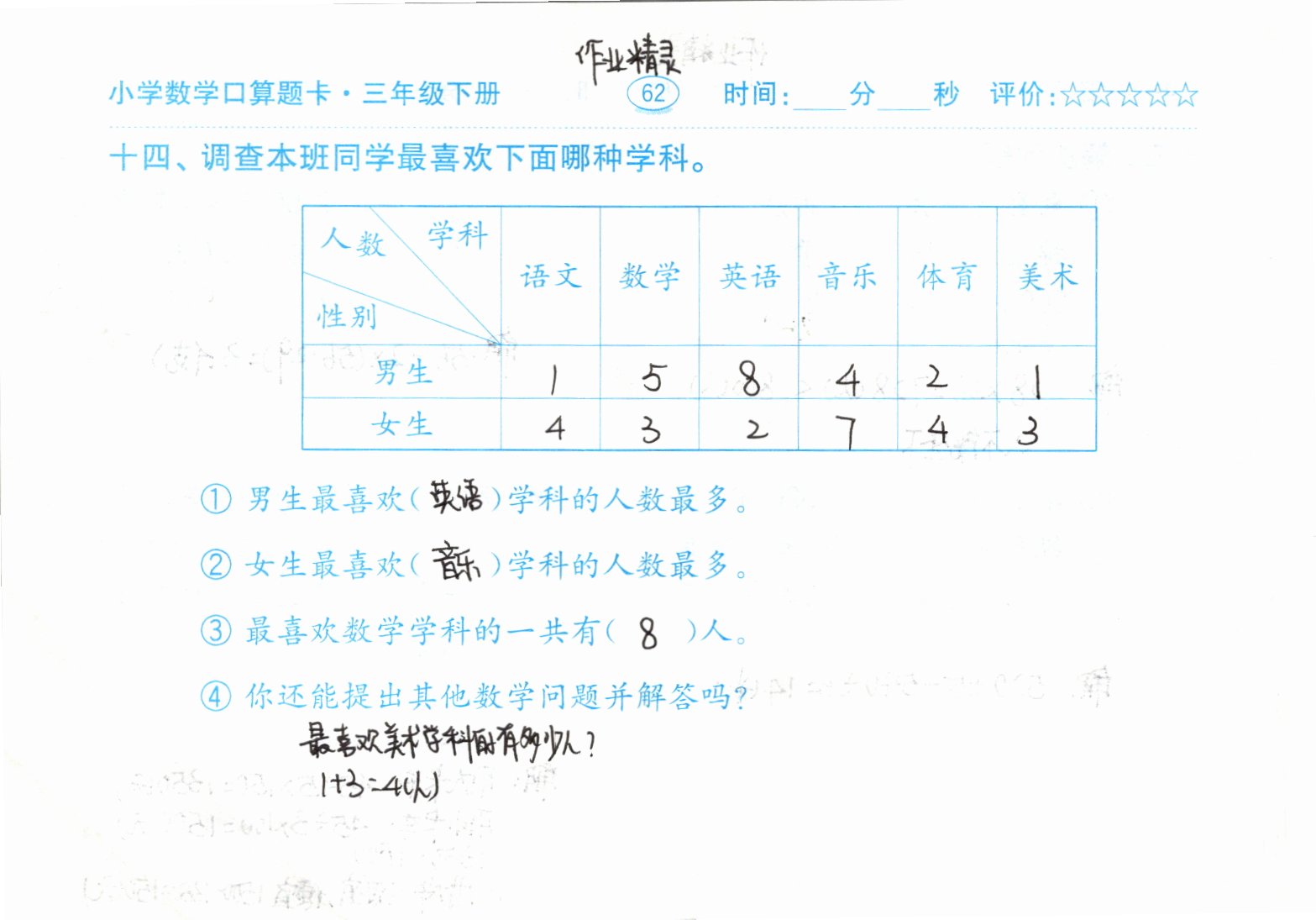 注:目前有些书本章节名称可能整理的还不是很完善,但都是按照顺序排列的,请同学们按照顺序仔细查找。练习册 2021年口算题卡三年级下册人教版齐鲁书社 答案主要是用来给同学们做完题方便对答案用的,请勿直接抄袭。
